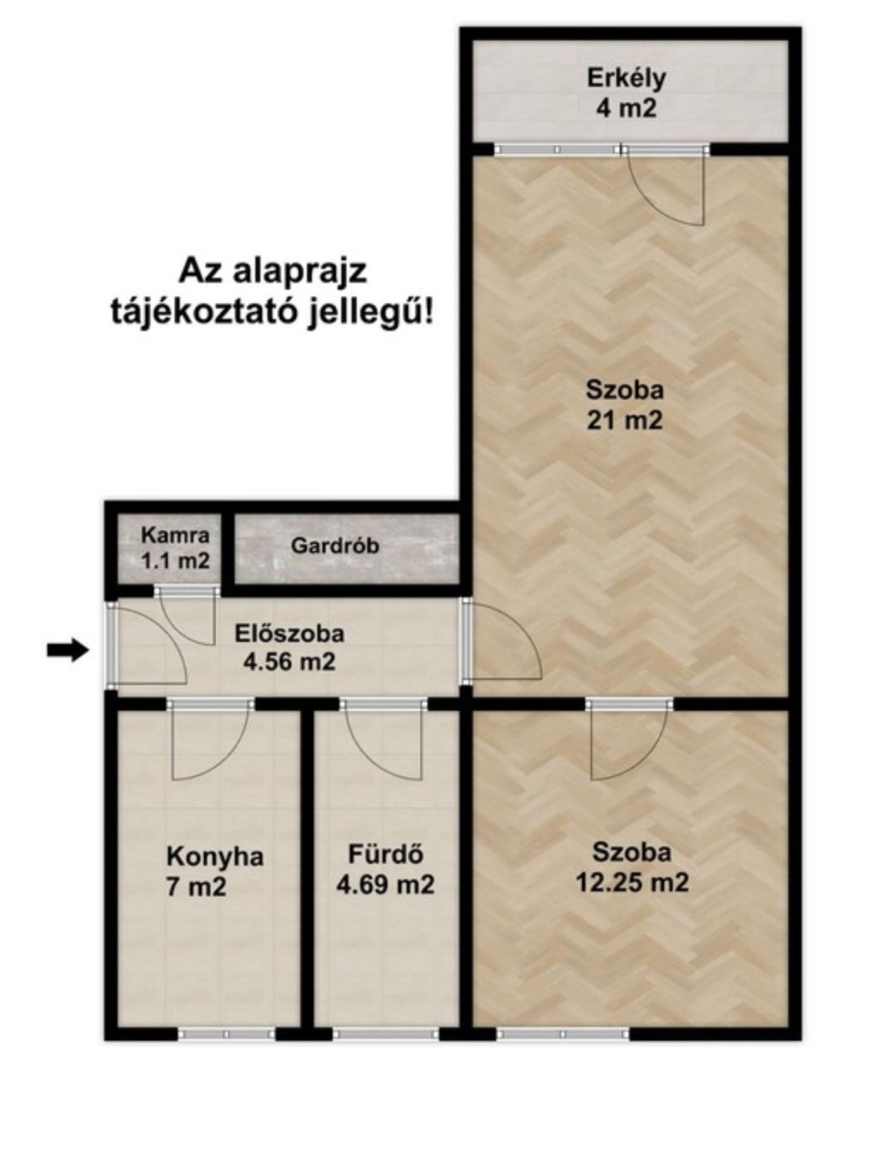 A lakás rendkívül praktikus elrendezésű: egy tágas szoba, egy nappali, valamint egy fürdőszoba áll rendelkezésre.