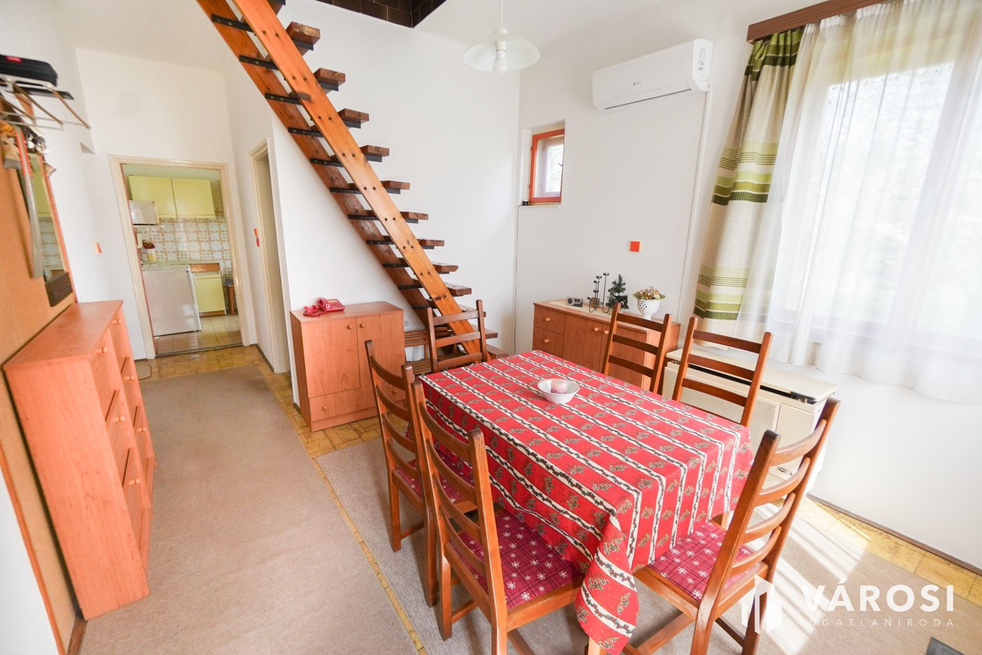 A ház 3 szinten helyezkedik el melyekből a földszinti és a tetőtéri egység belső lépcsővel össze lett kötve.