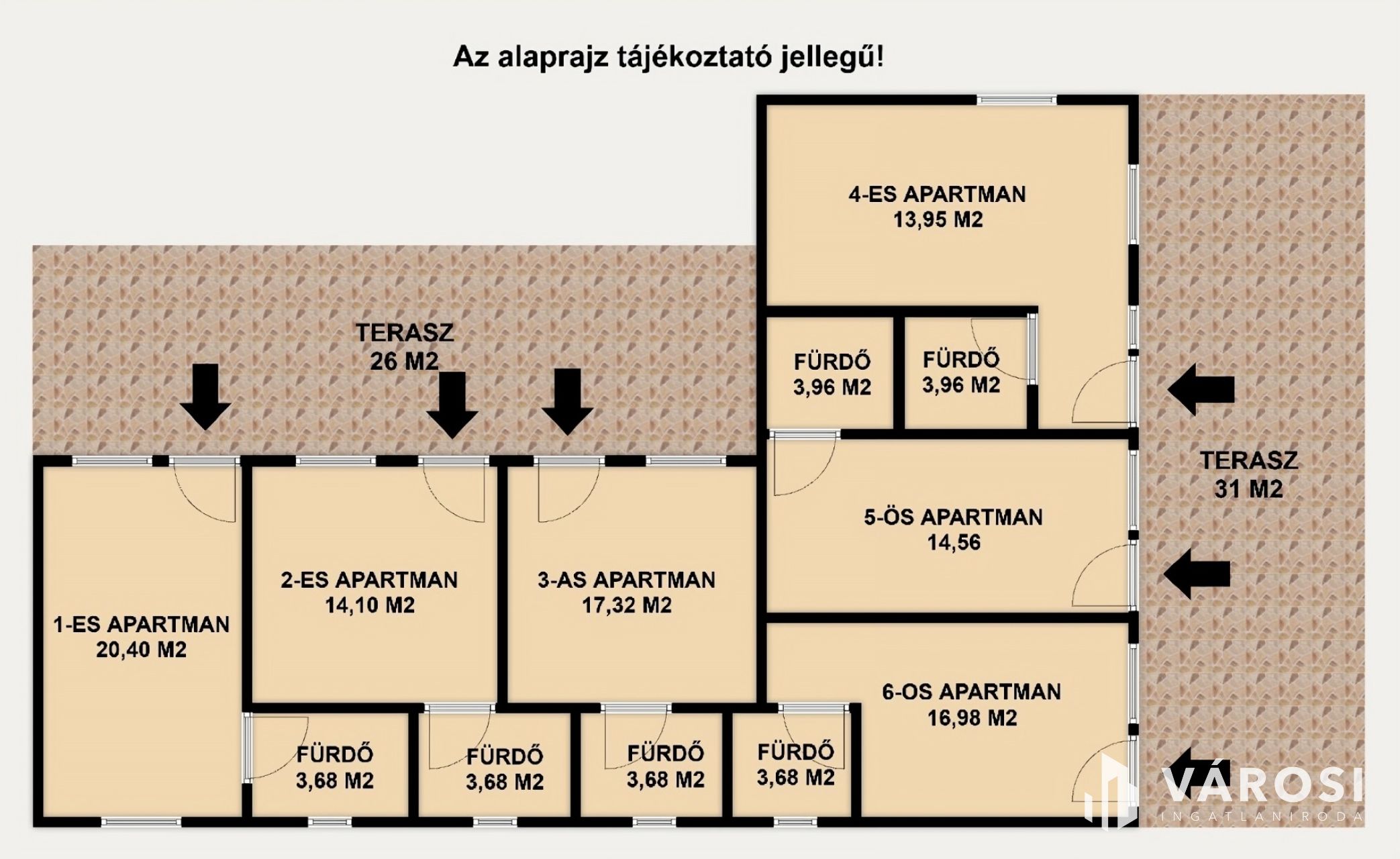 - Apartmanok száma: 6 teljes értékű, külön bejáratú apartman
