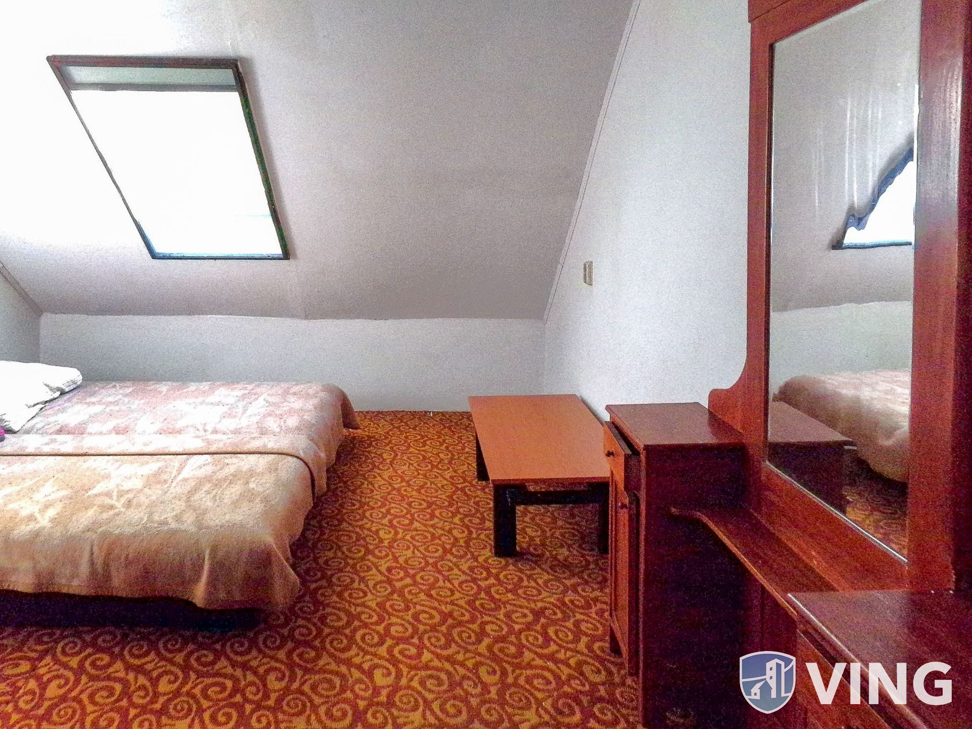 Az udvaron elhelyezkedő, szintén kétszintes vendégház földszintjén egy nappali-étkező, egy konyha, fürdőszoba és WC található, emeletén két szoba, közlekedő és WC.