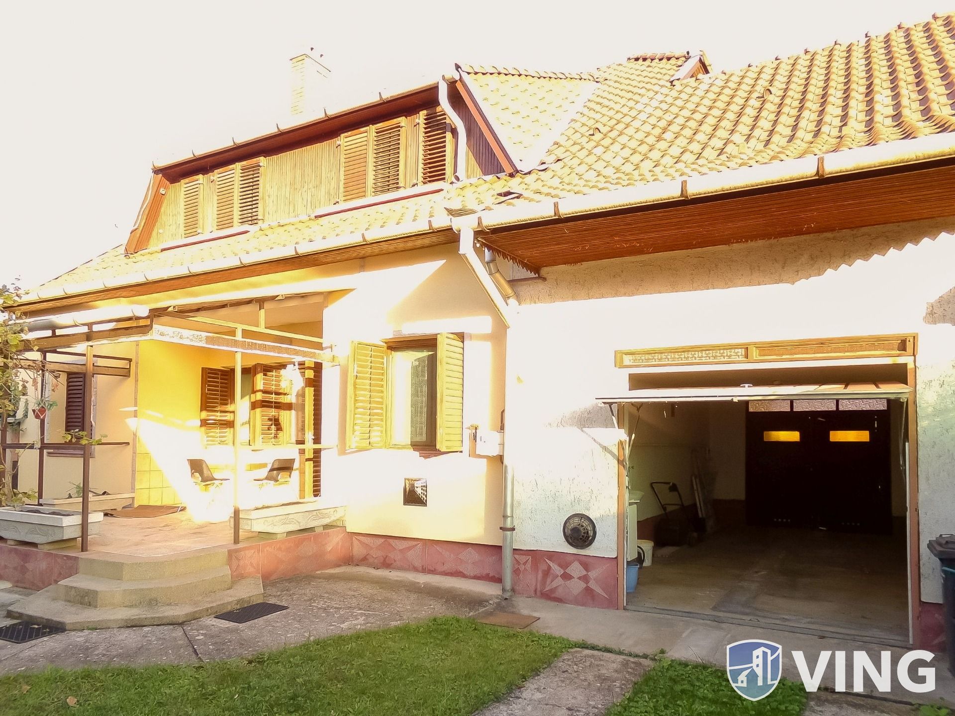 A masszív, tökéletes szerkezetű ház 1990-ben épült, vasalt beton alappal, tégla lábazattal és falazattal. Az épület megjelenését zsalugáteres fa ablakai teszik hangulatossá. 2021-ben tulajdonosai kicseréltek néhány burkolatot, a ház és a vendégház is külső szigetelést kapott. Az épülethez 2 db garázs is tartozik.