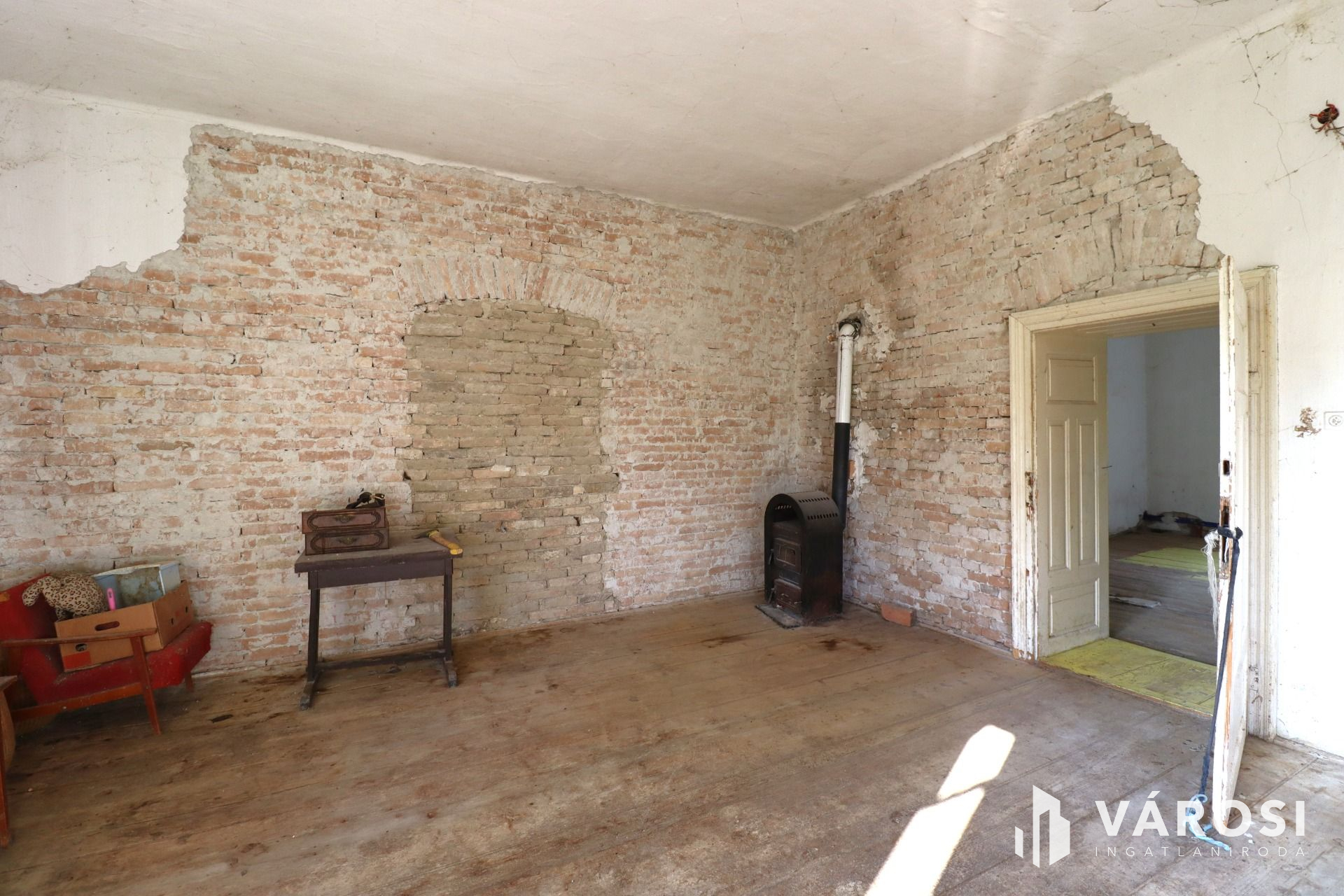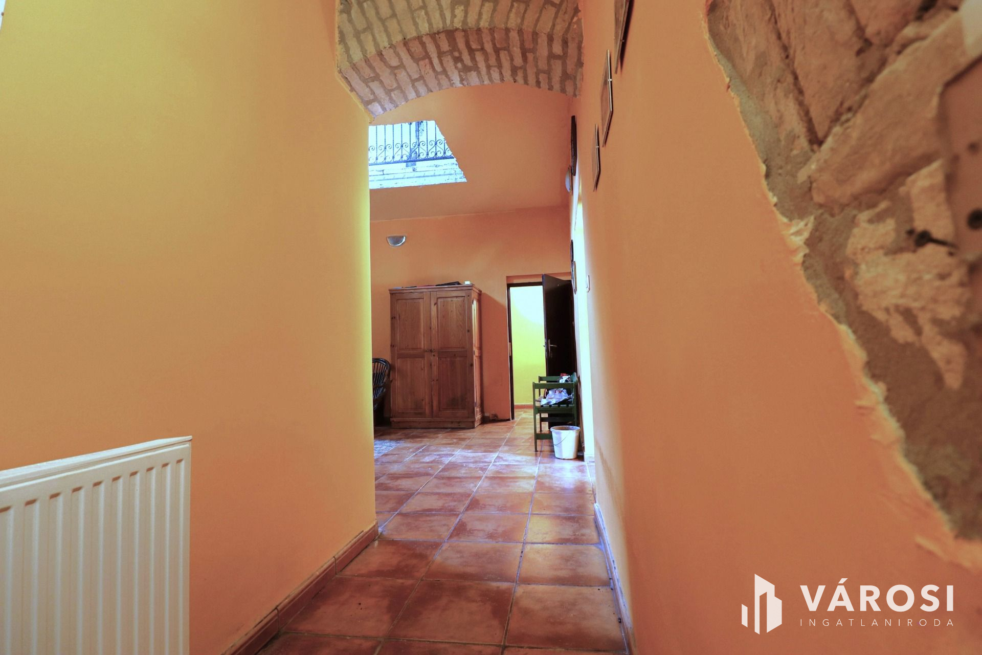 A folyosó, körfolyosó, szobák, fürdőszoba falai, burkolatok még felújításra várnak.
