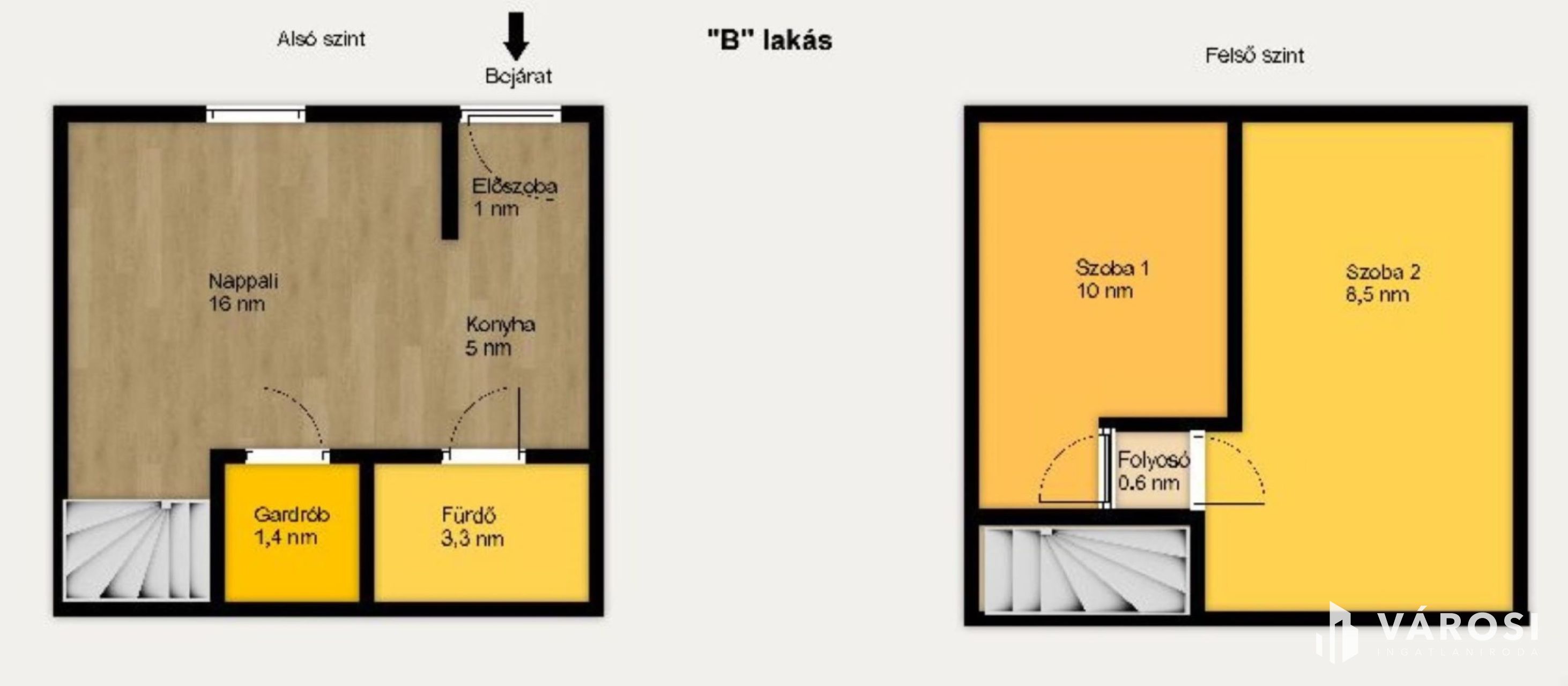 - belső lépcsővel elérhető két külön nyíló hálószobával.