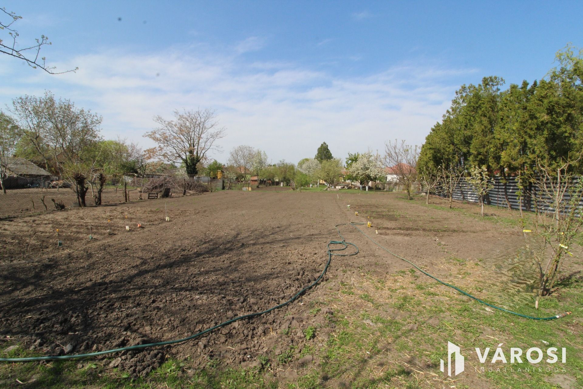 Az udvaron, garázs, ólak, tárolók találhatók, és a telek hátsó része megművelt kert gyümölcsfákkal.