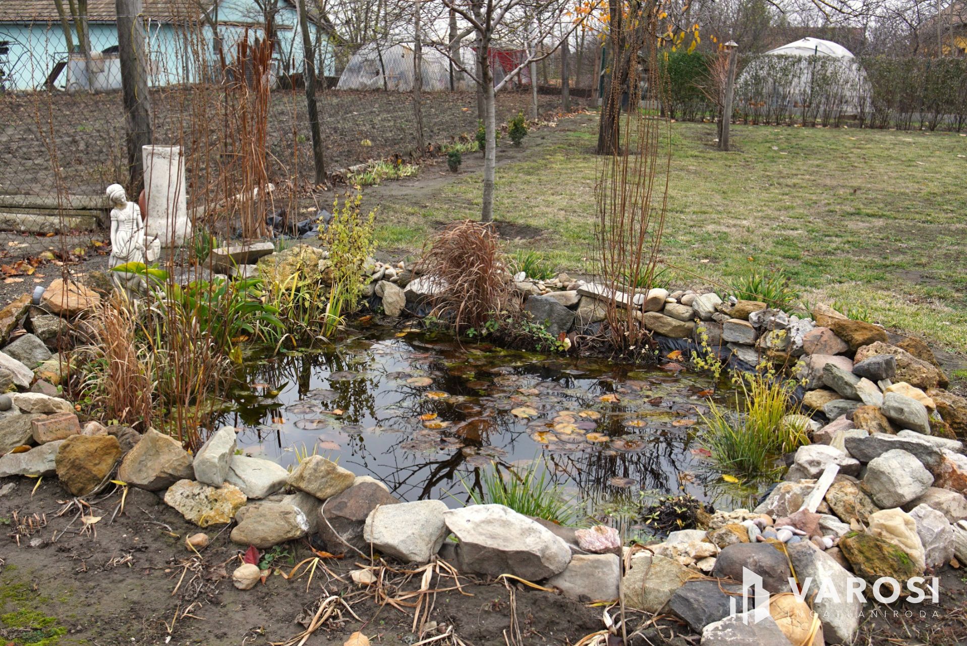In the beautifully maintained garden, next to the house, there is a paved parking area and three metal garages to keep all your vehicles safe from the elements. There is also a small but beautiful ornamental pond in the garden! The area is wonderful, the house is perfect—you really just need to move in!