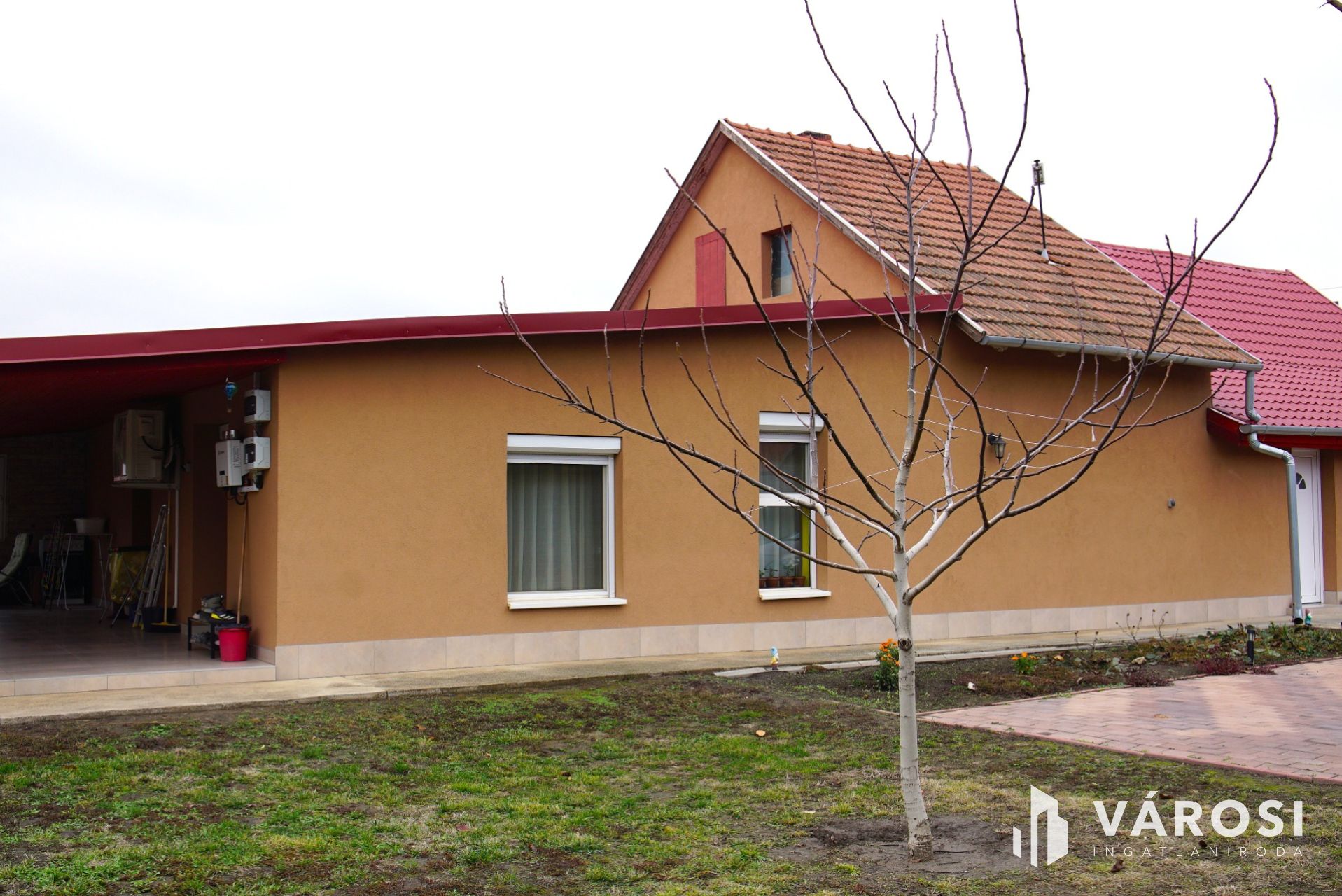 A truly sustainable, spacious, and excellent condition family home is for sale in Röszke! Thanks to its practical layout, it is also suitable for larger families. The house was built in two phases: the original adobe house was completely renovated and extended by the previous owner with a brick-built wing towards the outbuildings. This resulted in a 131 sqm living space, which also includes a 40 sqm covered terrace opening from the living room, connecting the house to the landscaped backyard. Solar collectors are installed on the terrace roof, the outdoor unit of the engineering systems is on the terrace, and the indoor units are located in the utility room next to the modern combi boiler. Thanks to this system, the annual electricity bill is only about 20,000 HUF, covering the grid usage fee. In 2020, the roof was replaced and the solar panel system was installed, further modernizing the property.