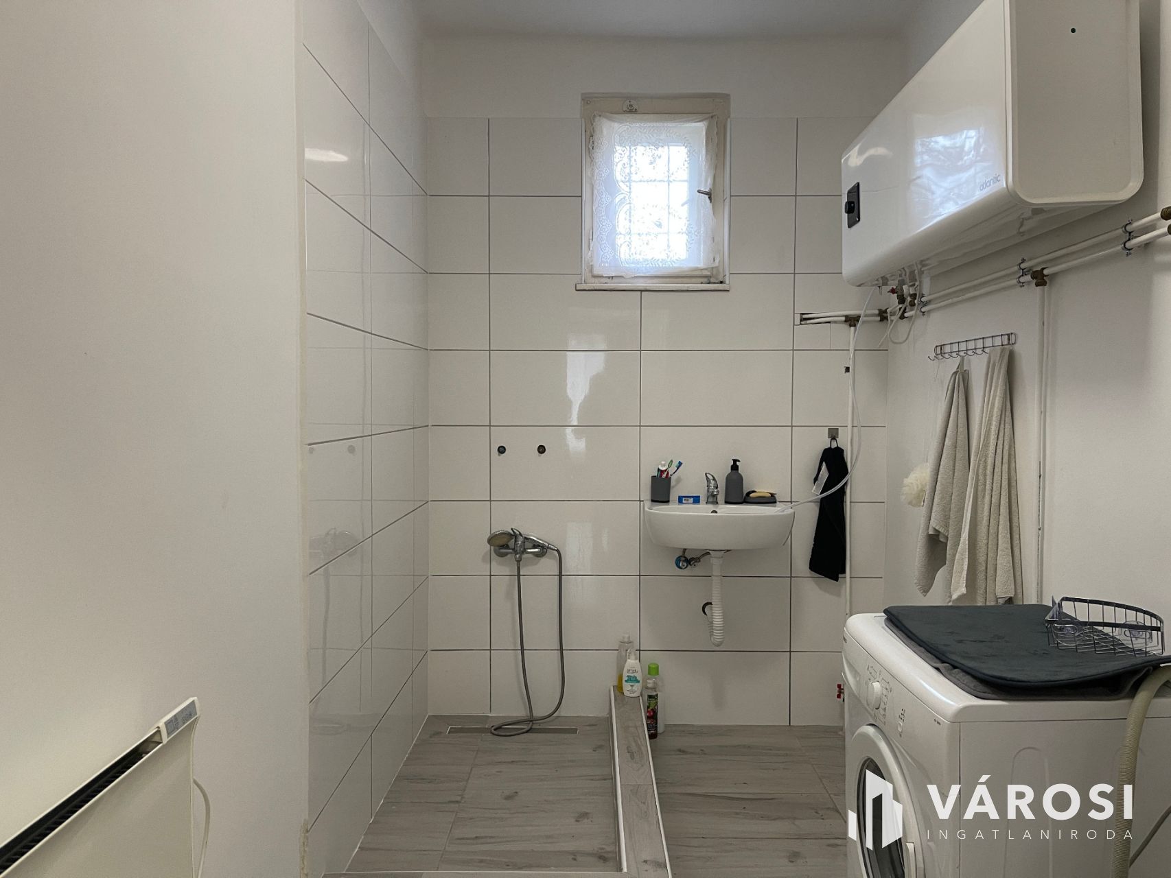 A meleg vizet egy okos bojler szolgáltatja, a fűtése jelenleg fűtőpanelekkel megoldott. A gáz bent van a házban, de használaton kívül. A legegyszerűbb megoldás még a klímák felszerelése lehet, hiszen a teljesen korszerű villamos hálózat ezt lehetővé teszi.
