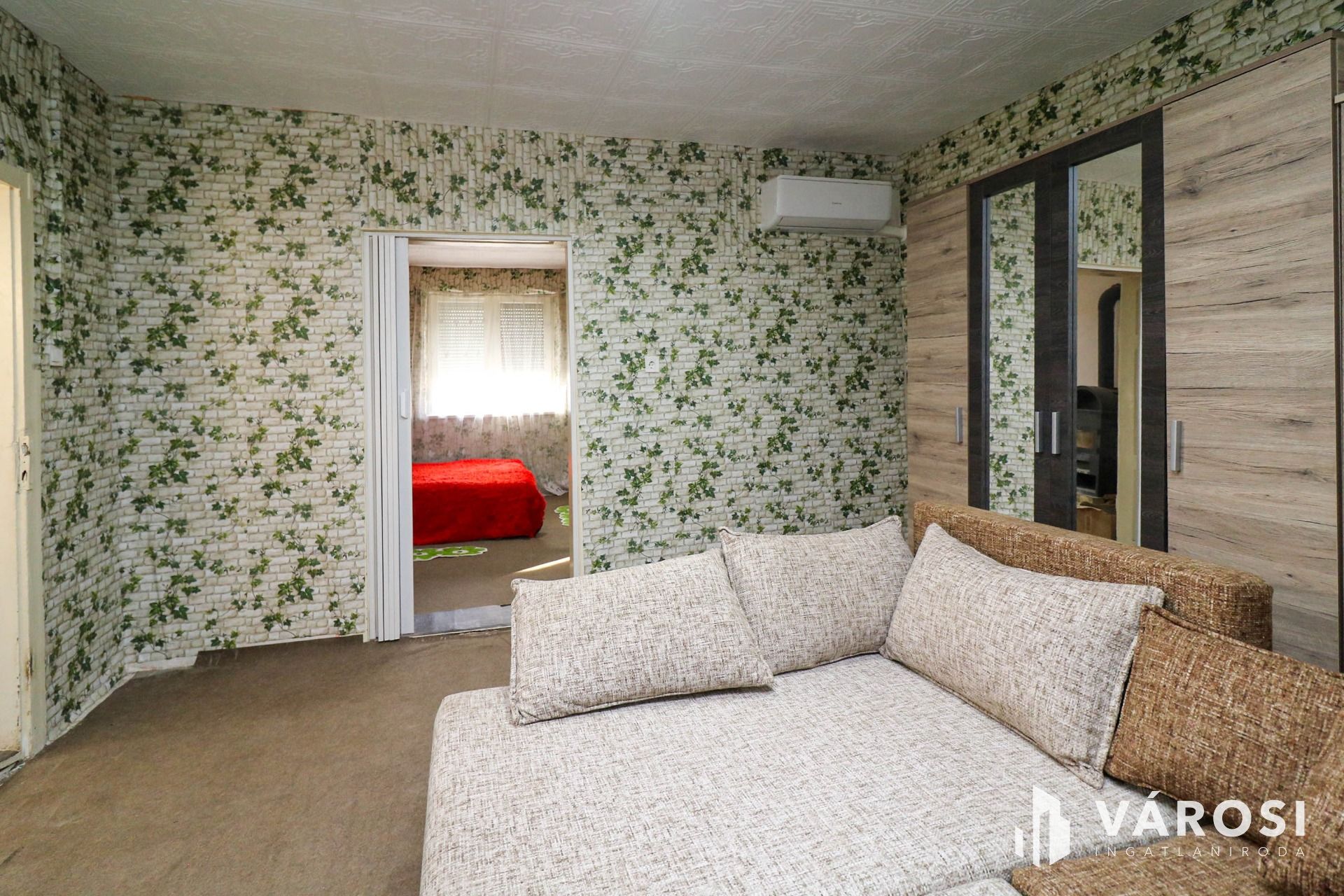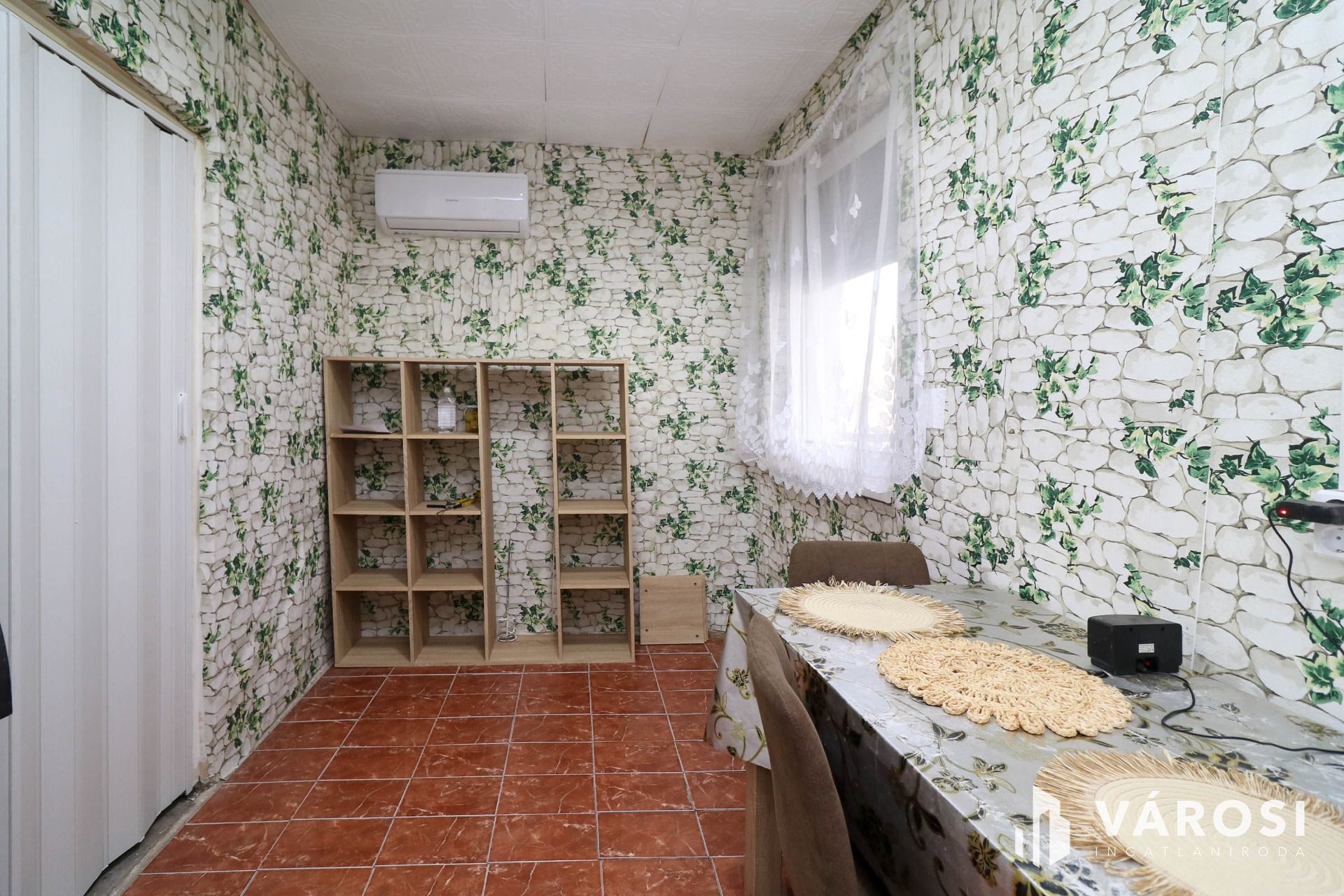 A belső terek jelenlegi kialakítása praktikus megoldásokat kínál, ugyanakkor lehetőséget ad az új tulajdonos számára, hogy saját ízlése szerint tovább formálja és korszerűsítse az ingatlant. A helyiségek elválasztása jelenleg harmonika ajtókkal megoldott, amely rugalmas térhasználatot biztosít.