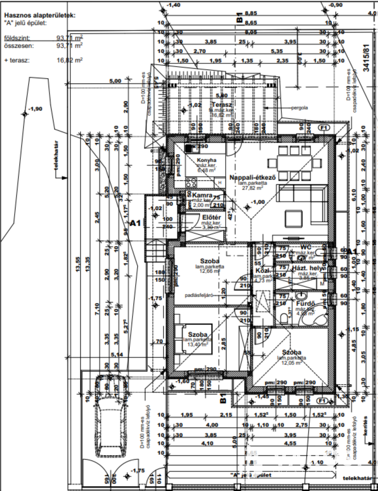A 94 m² lakóterülettel rendelkező, nappali + 3 hálószobás kialakítású ingatlan egy tágas, jól élhető 385 m²-es saját telken helyezkedik el.