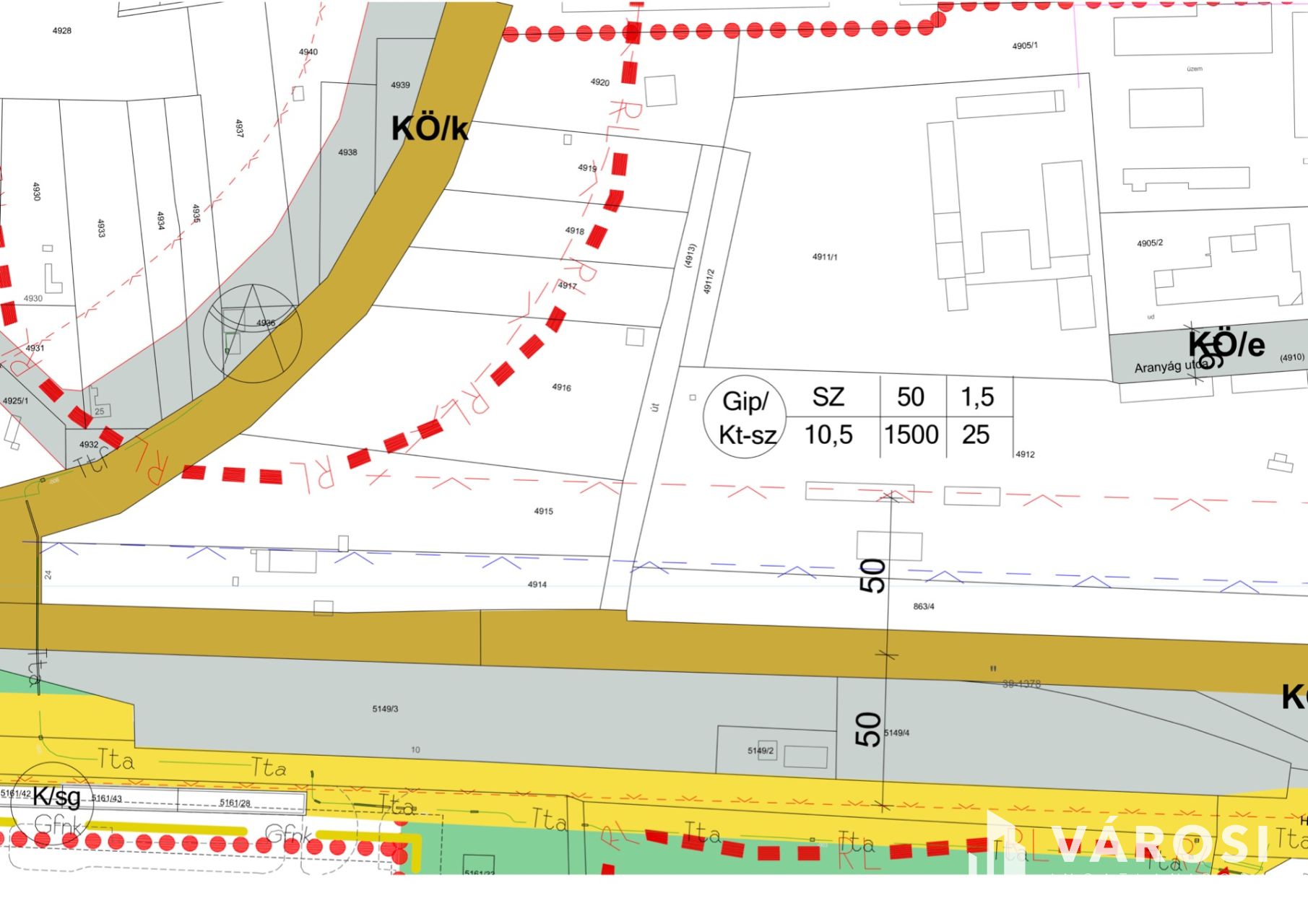 Az ingatlan övezeti besorolása GIP-Kt, melynek megfelelően a beépíthetőség 50% és az alábbi épületek építésére van lehetőség: állattartó létesítmény, gazdasági épület, raktár, sátorgarázs, konténerház, konténerépület.