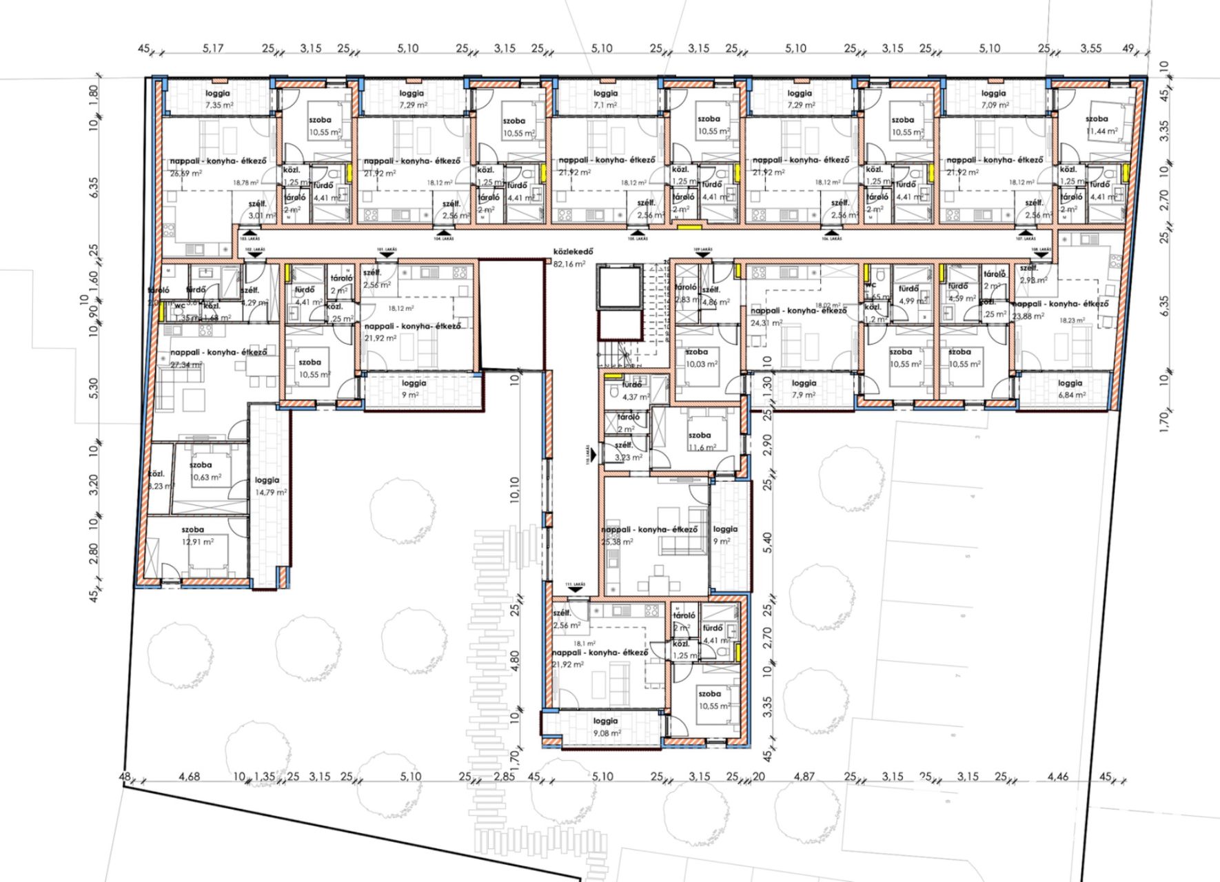 Makón, presztizs lokációval rendelkező - Makói fürdőtől 30 méterre - a Szent János téren - A Napfény Residenceben - , Eladó egy most induló, tégla építésű, ELSŐ EMELETI , 55,58 nm-es élettérrel rendelkező, amerikai konyha nappali plusz egy szobás loggiás lakás (110.lakás), liftes házban.