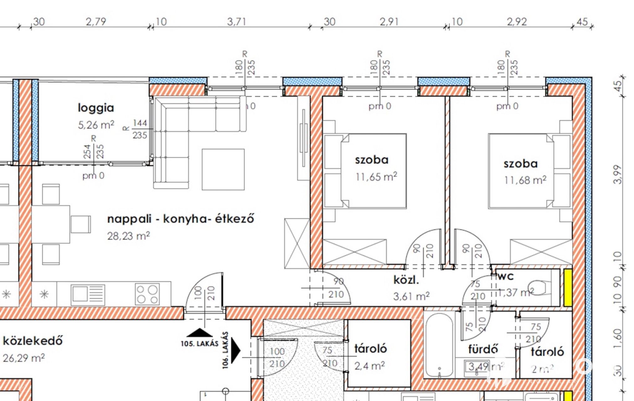 Makón, presztizs lokációval rendelkező - Makói fürdőtől 60 méterre, a Napfény Residenceben - a Páva utcában , Eladó egy most induló, tégla építésű, ELSŐ EMELETI , 67,29 nm-es élettérrel rendelkező, amerikai konyha nappali plusz kettő szobás lakás (105.lakás).