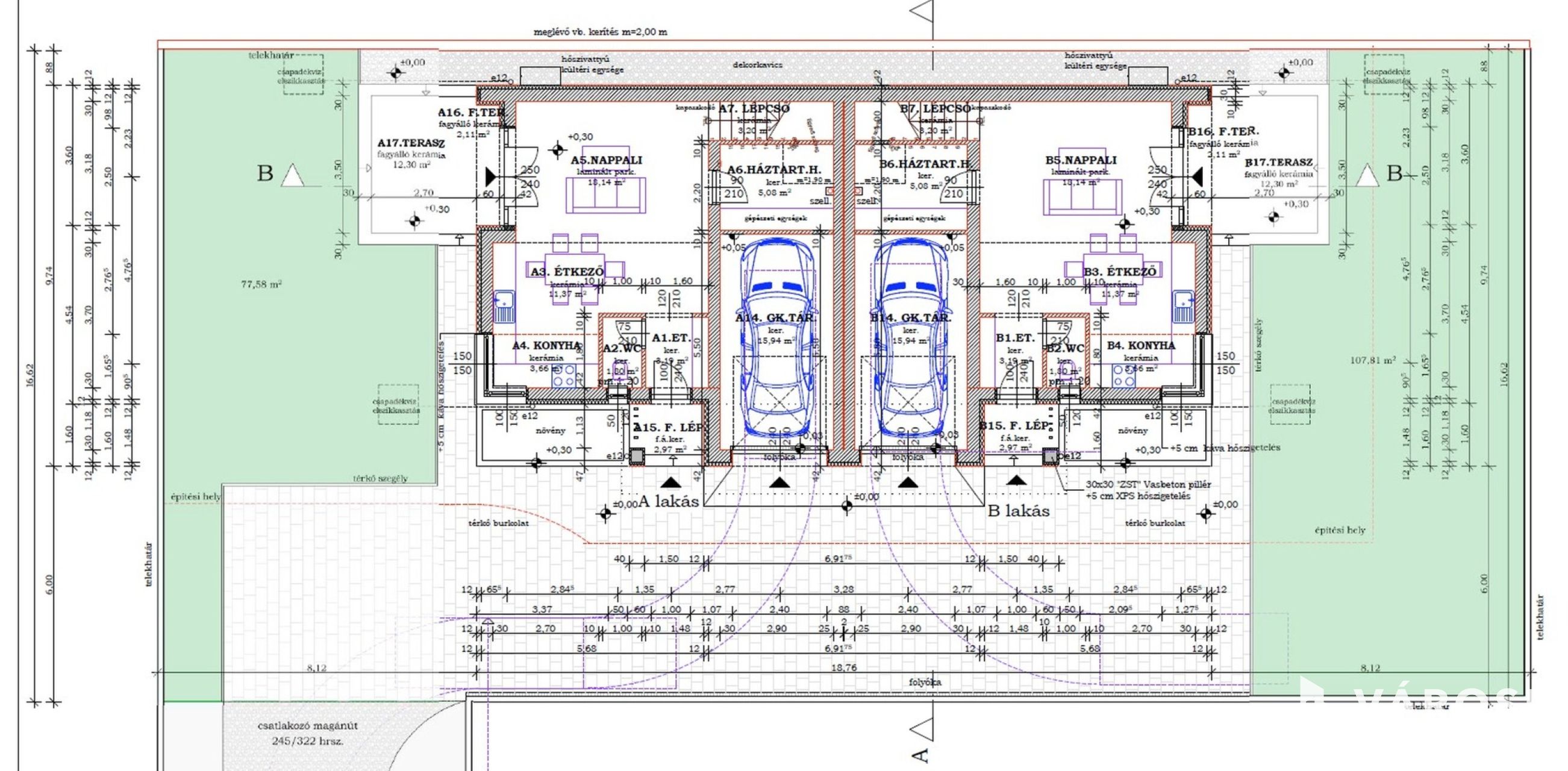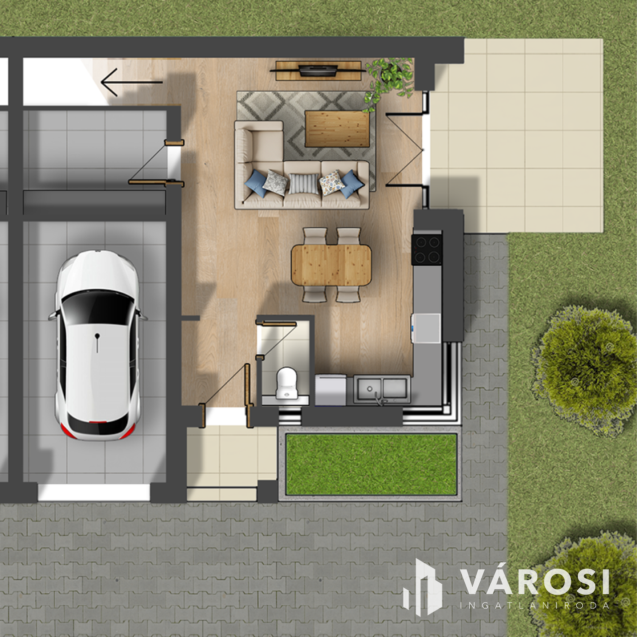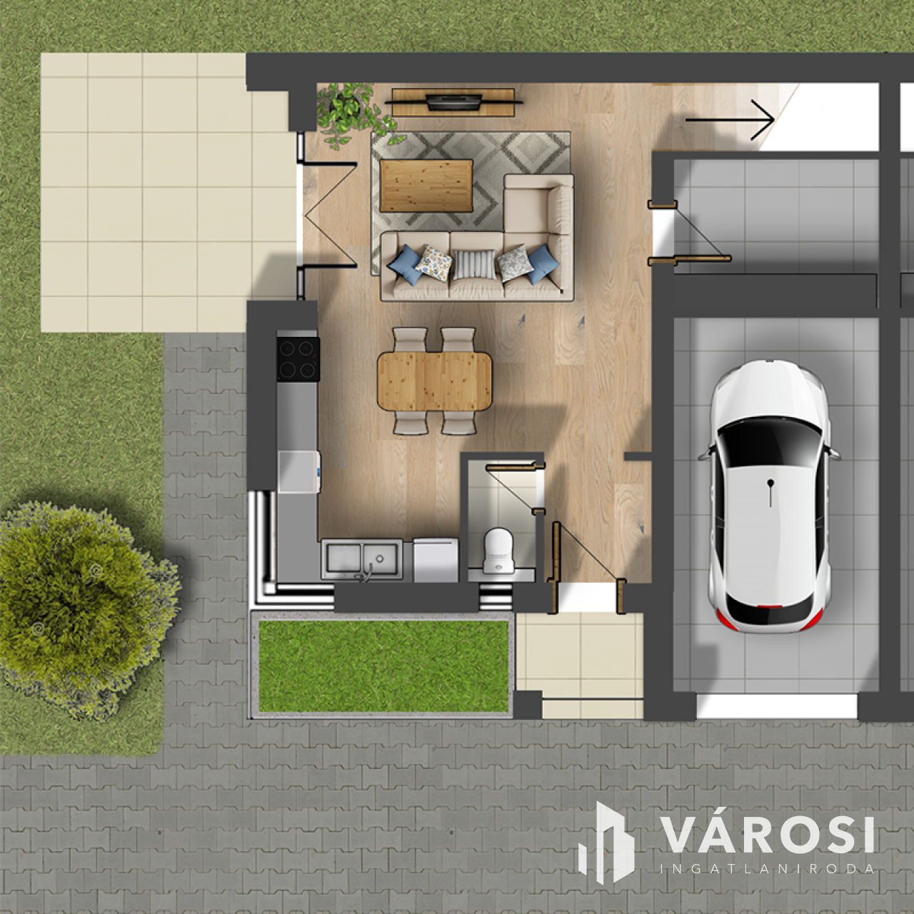 • + 16 m² garázs, távirányítós kapuval