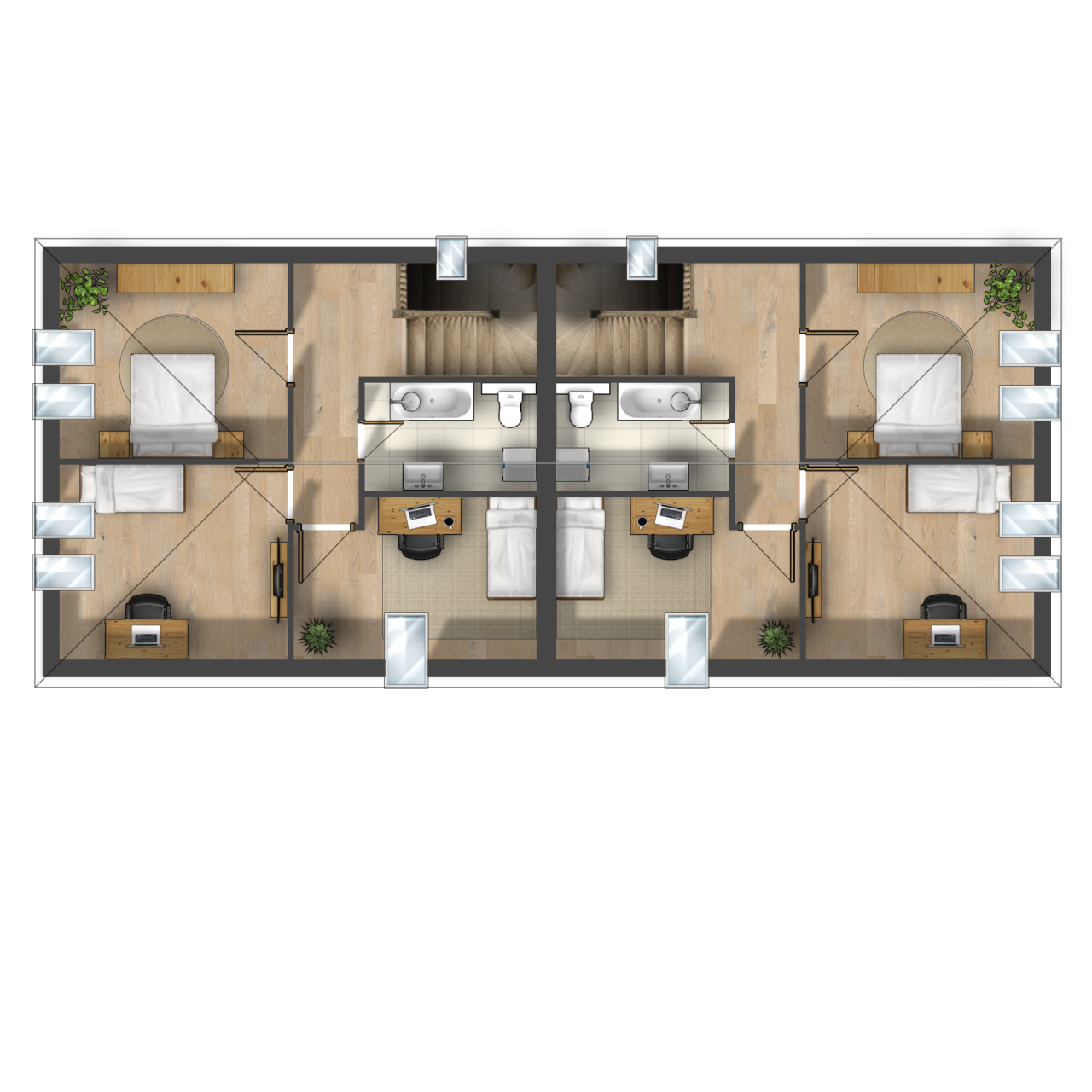 • Kétszintes ikerházak