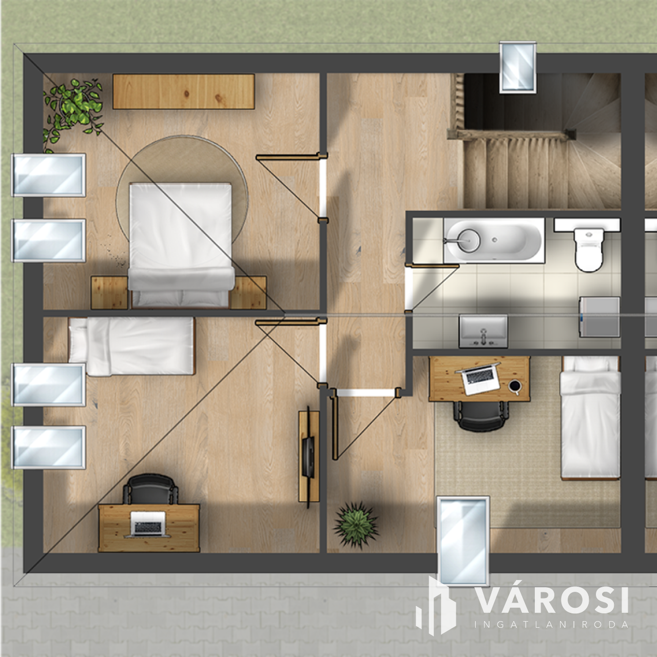 • 3 hálószoba + nappali