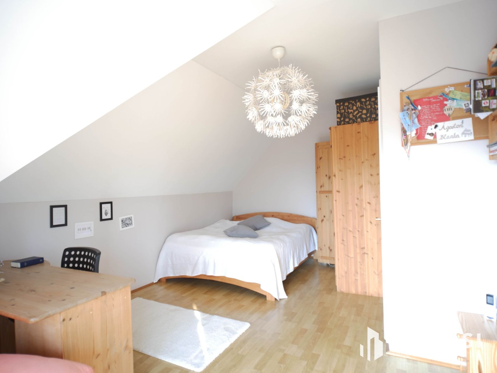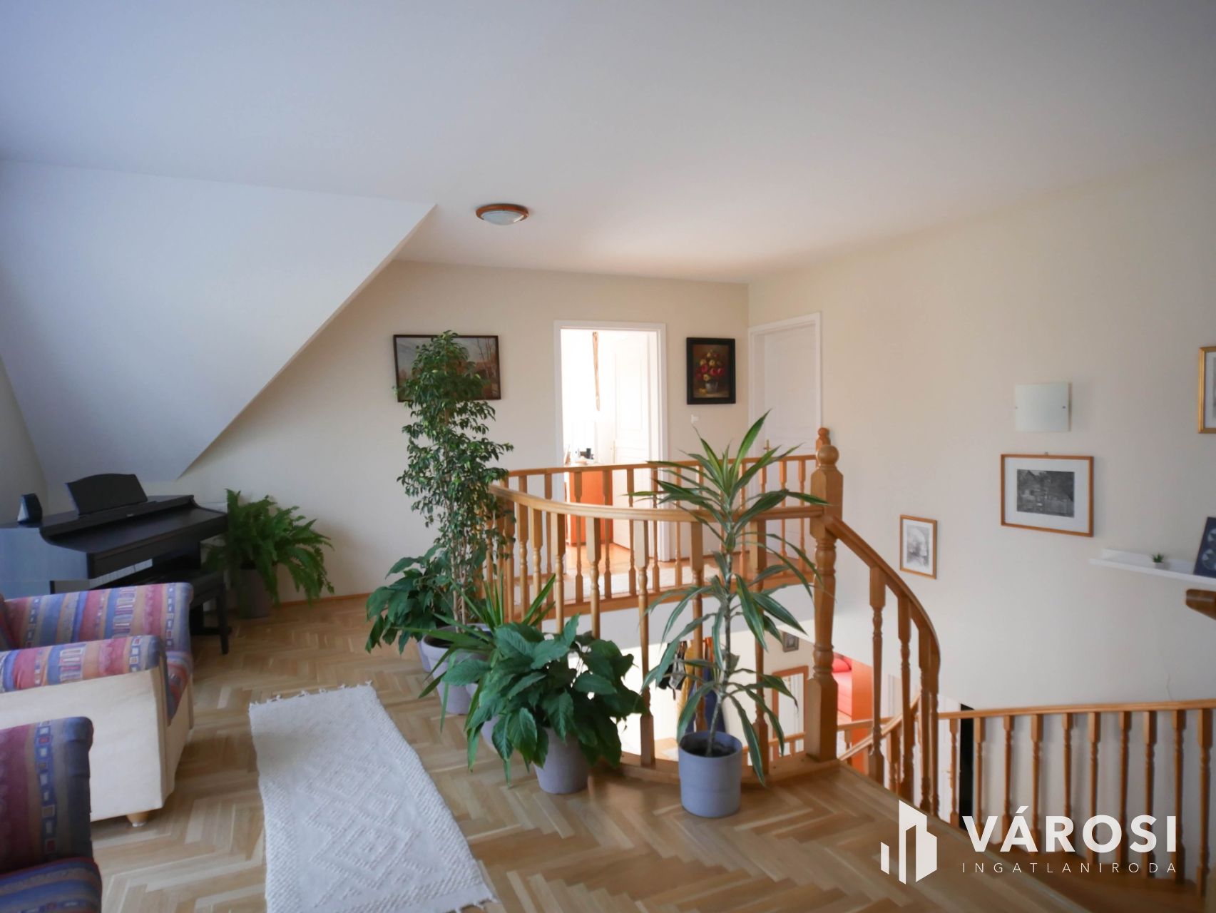 Az emeleten három hálószoba, fürdőszoba, gardrób, galéria és két erkély biztosítja a családtagok számára a nyugodt, szeparált életteret.
