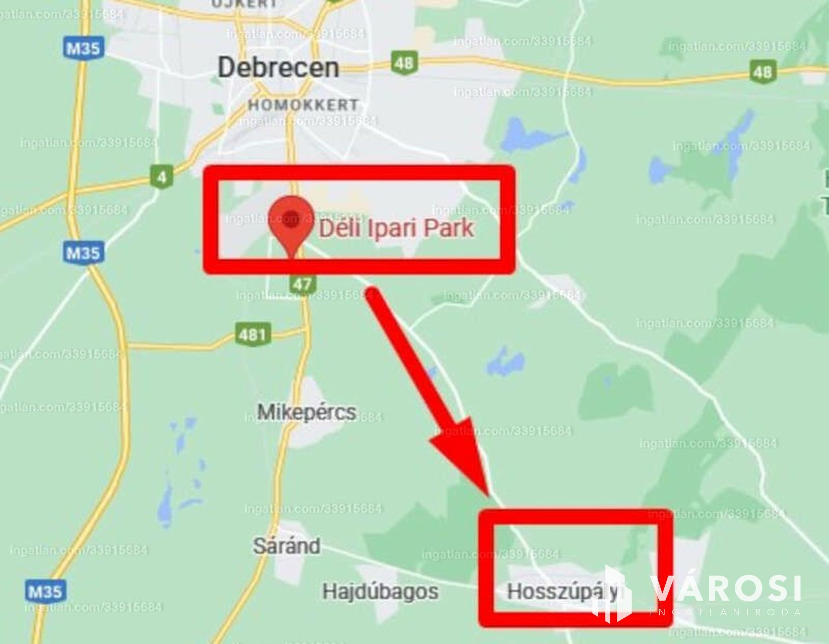 Egyben vagy darabokban eladó művelési ágból kivont, 165138 m2-es különleges besorolású terület Debrecen mellett, a Déli Ipari park szomszédságéban. A telek előnyei közé tartozik a jó közlekedési lehetőség, amely megkönnyíti az eljutást a környező városokba és falvakba