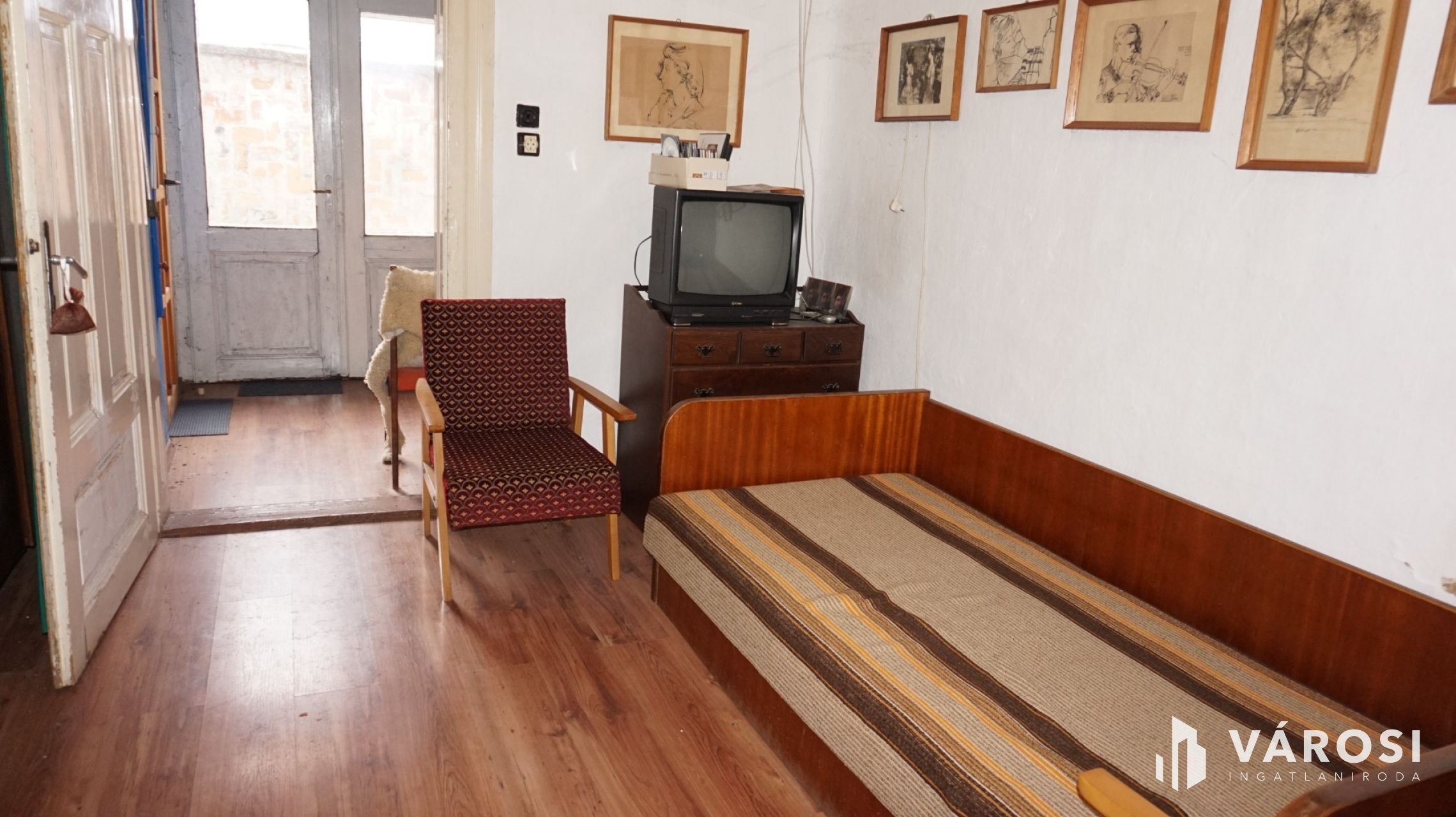 -30 m2-es szoba régi fa padló, 25 m2-es szoba parkettás, 11 m2-es szoba laminált padlós