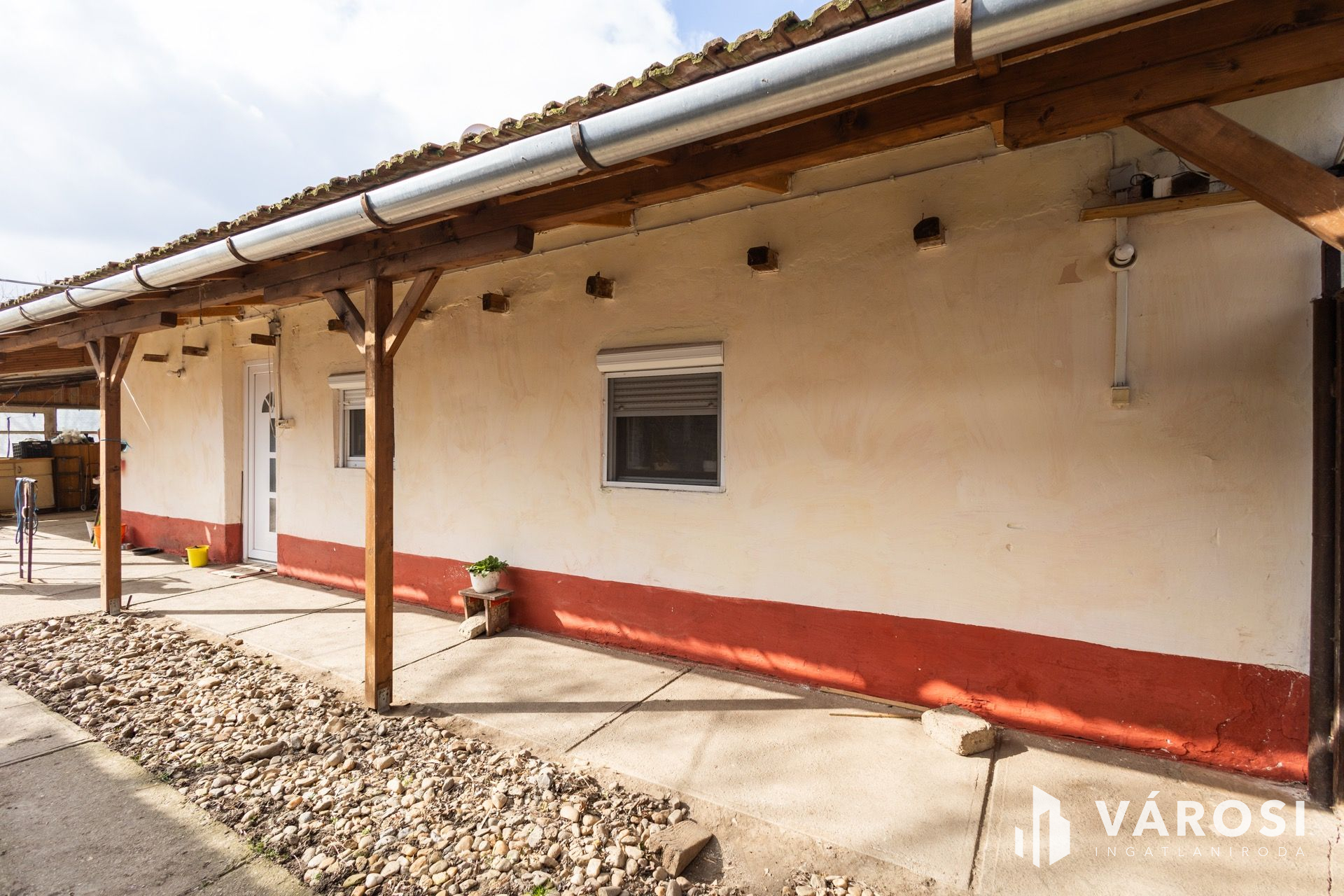 A lakórészen a tető gerendák néhány éve cserélve lettek, a cserép nagyon masszív, jó állapotú. A nyílászárók egy része műanyagból, a nagy szobán pedig fából készültek kétrétegű üvegezéssel. A telek részben van körbekerítve.