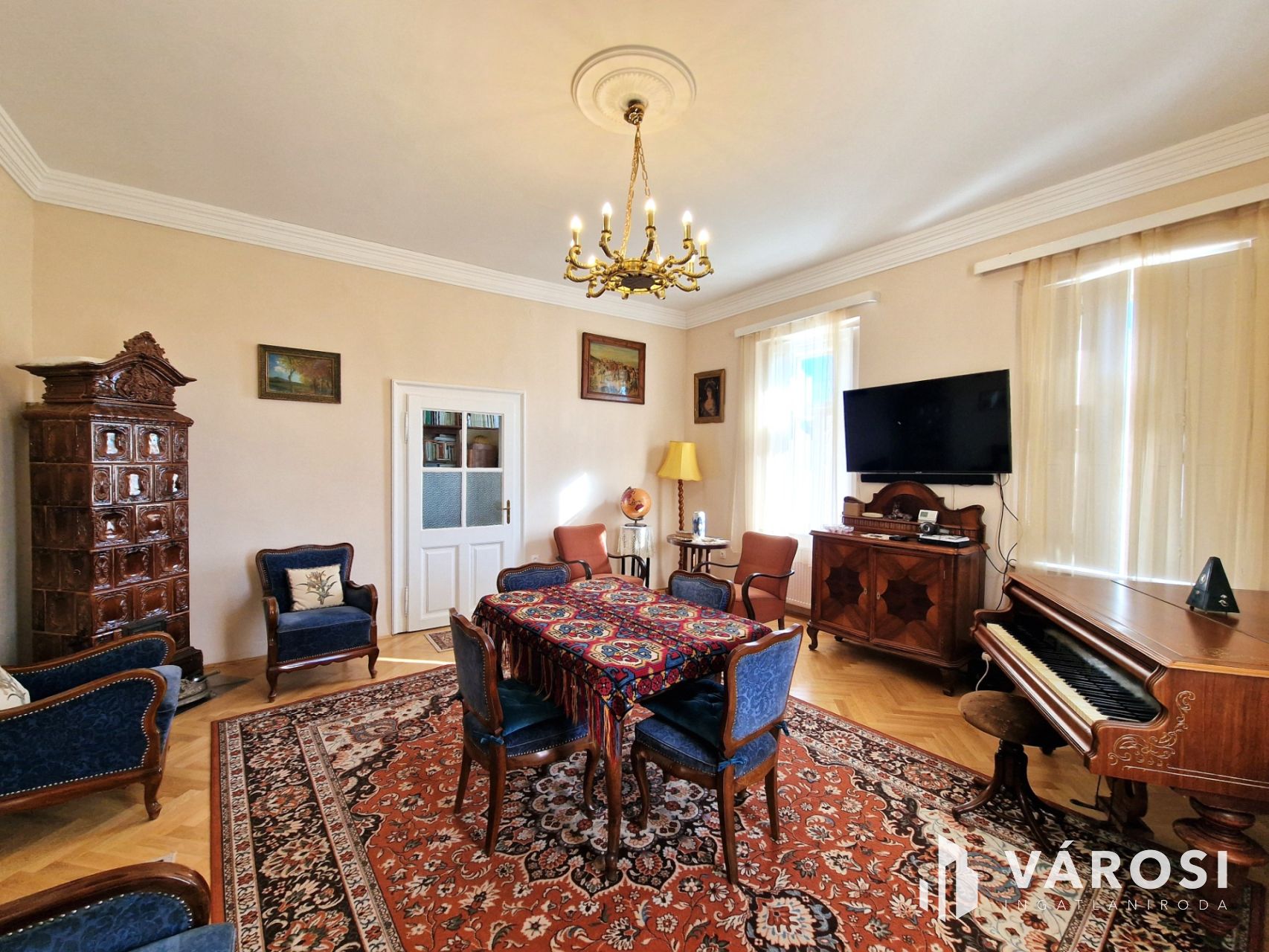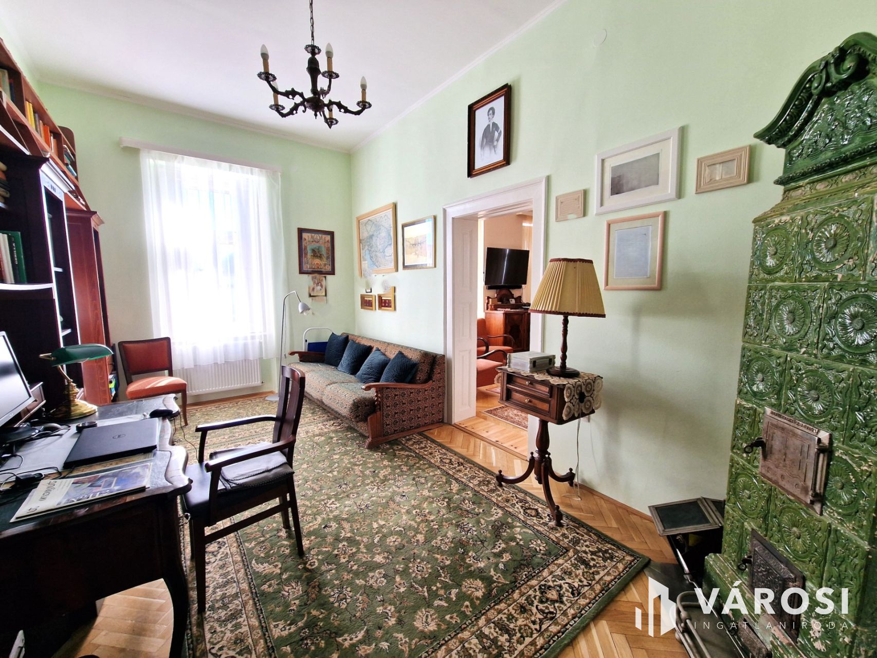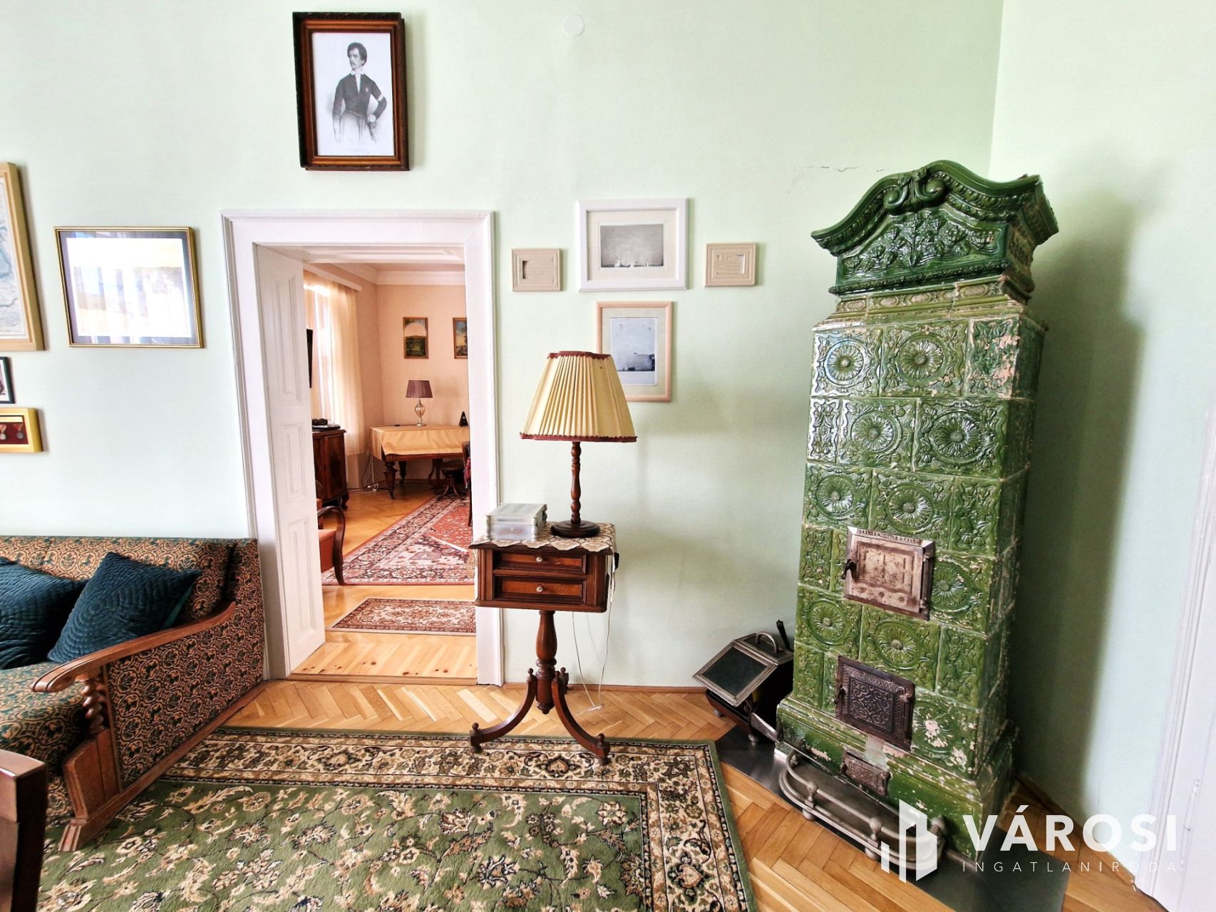 + Fűtését, a nappaliban és dolgozóban elhelyezett egyedi kivitelezésű, fa tüzelésű cserépkályhák támogatják.