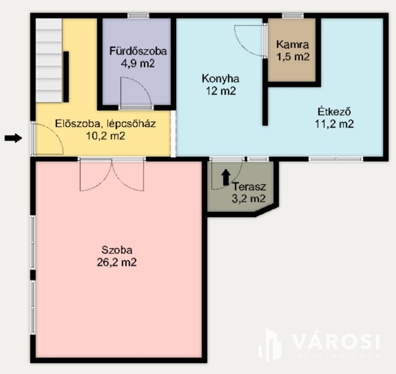 Klimatizált, jó elrendezésű, amit a csatolt alaprajzokon is megtekinthet. Az alaprajzokon a tényleges négyzetmétert tüntettem fel, de a tetőtér dőlését beszámítva a hasznos alapterület kb. 95 m2, ez szerepel egyébként a tulajdoni lapon is.