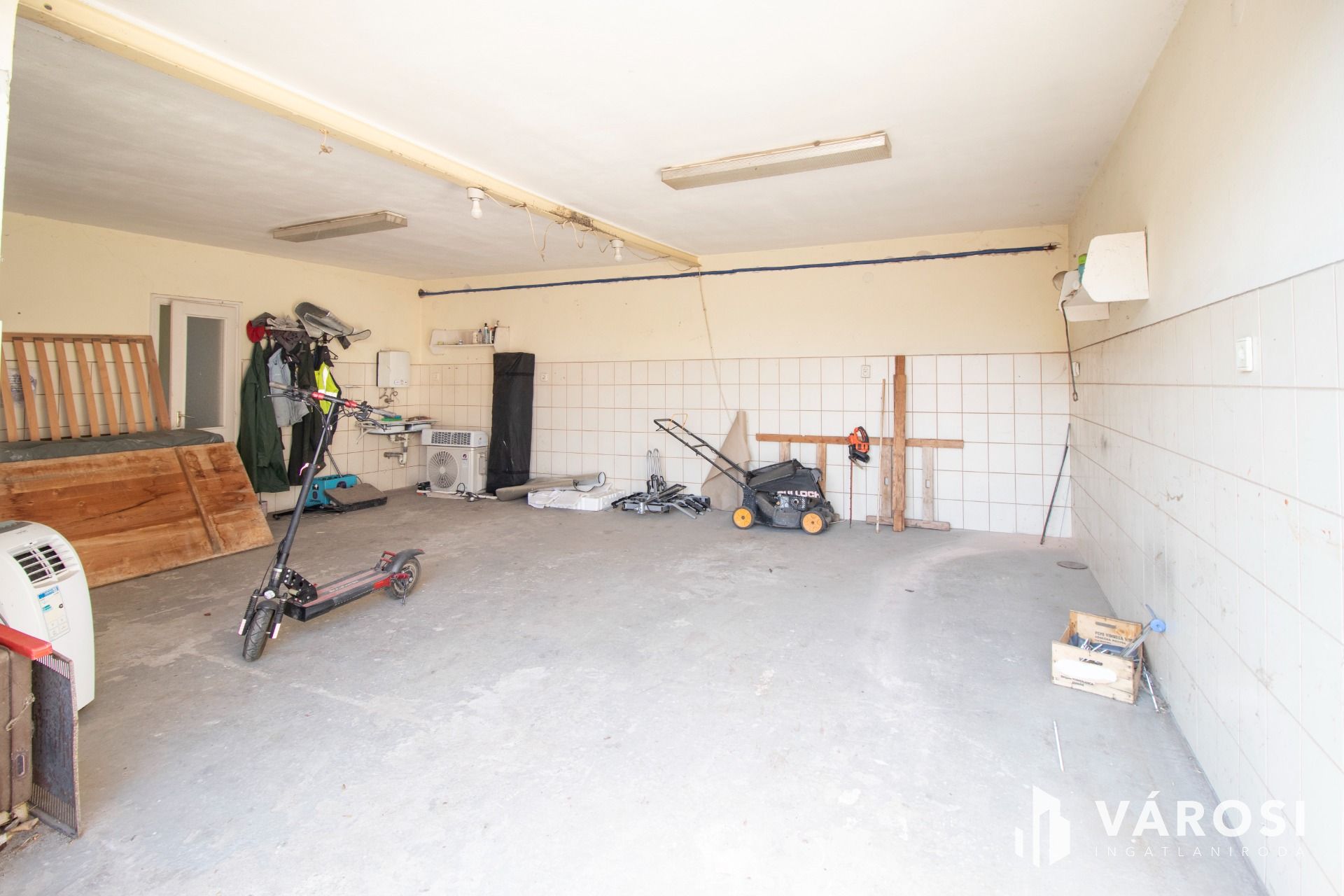 A telek, hátsó része külön kerített, ezen a részen három garázs, illetve egy vizesblokkal is rendelkező, 78 m2-es műhely került kialakításra.