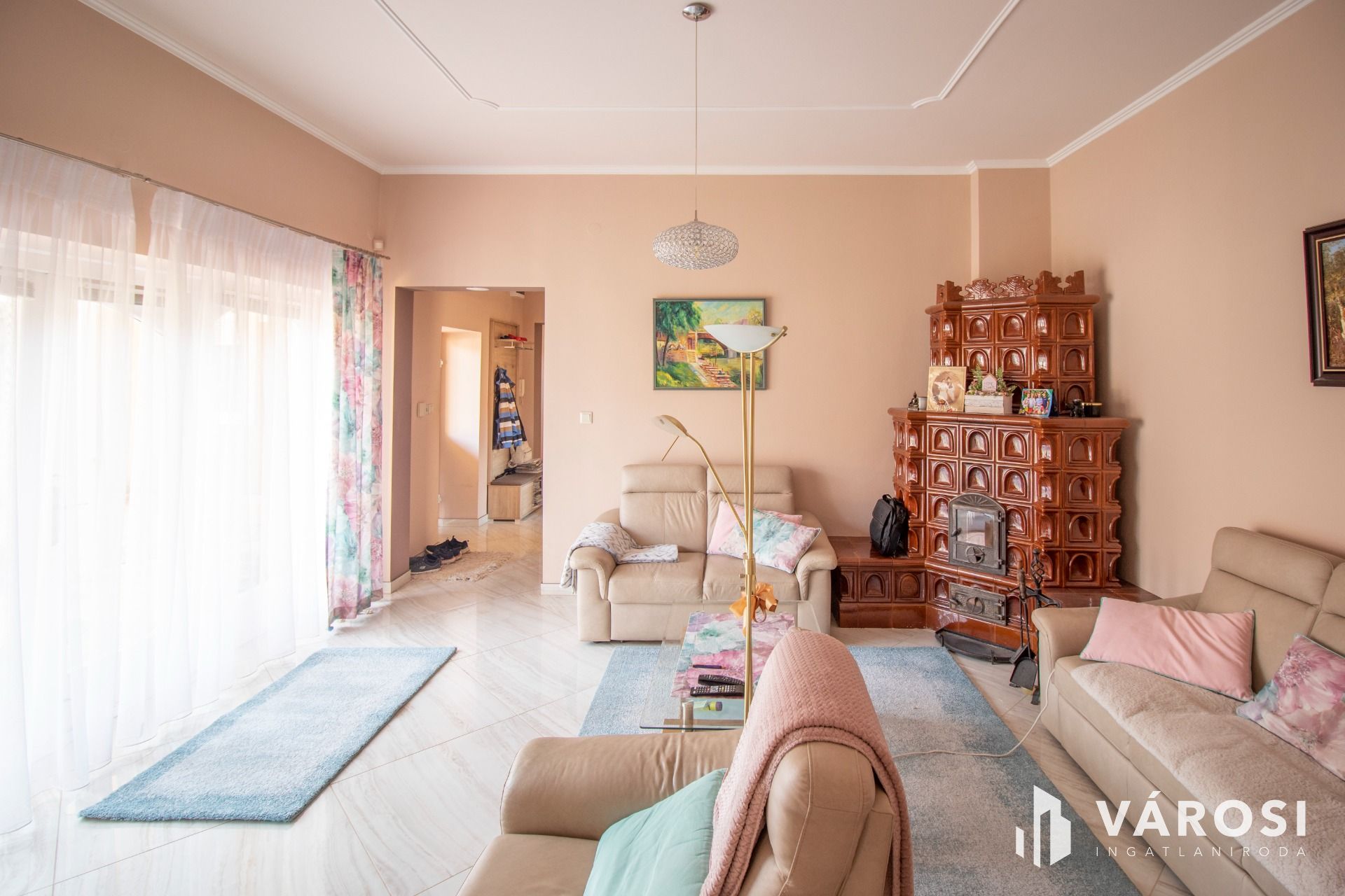 A lakórészek fűtése kombi gázkazánnal (radiátorokkal, részben padlófűtés hőleadással) megoldott, valamint a nappaliban egy hangulatos cserépkályha is kialakításra került.