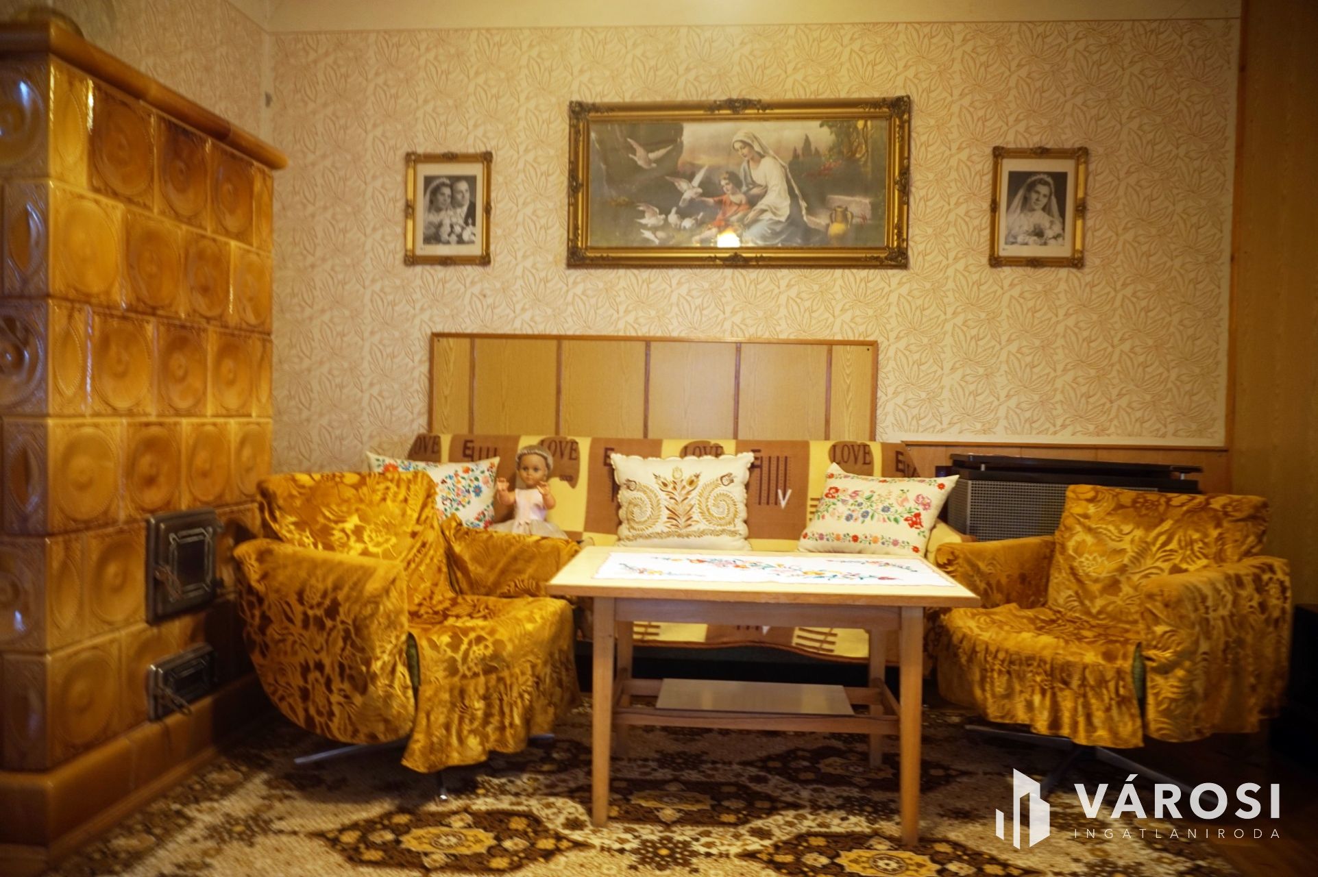 A fűtés gázzal, konvektorokkal üzemel, de lehetőség van 2 tökéletes állapotú cserépkályha használatára.