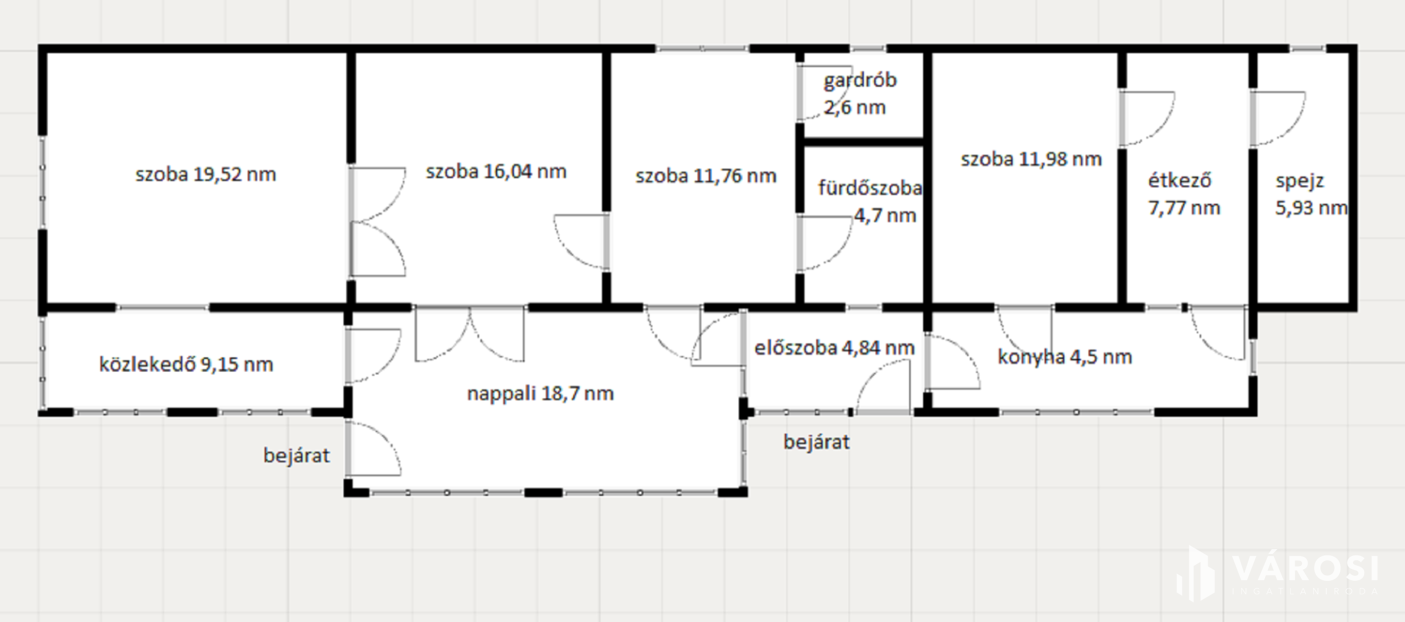 Összetétele: 4 szoba, gardrób, nappali, közlekedő, étkező, konyha, előszoba, fürdőszoba és spejz,