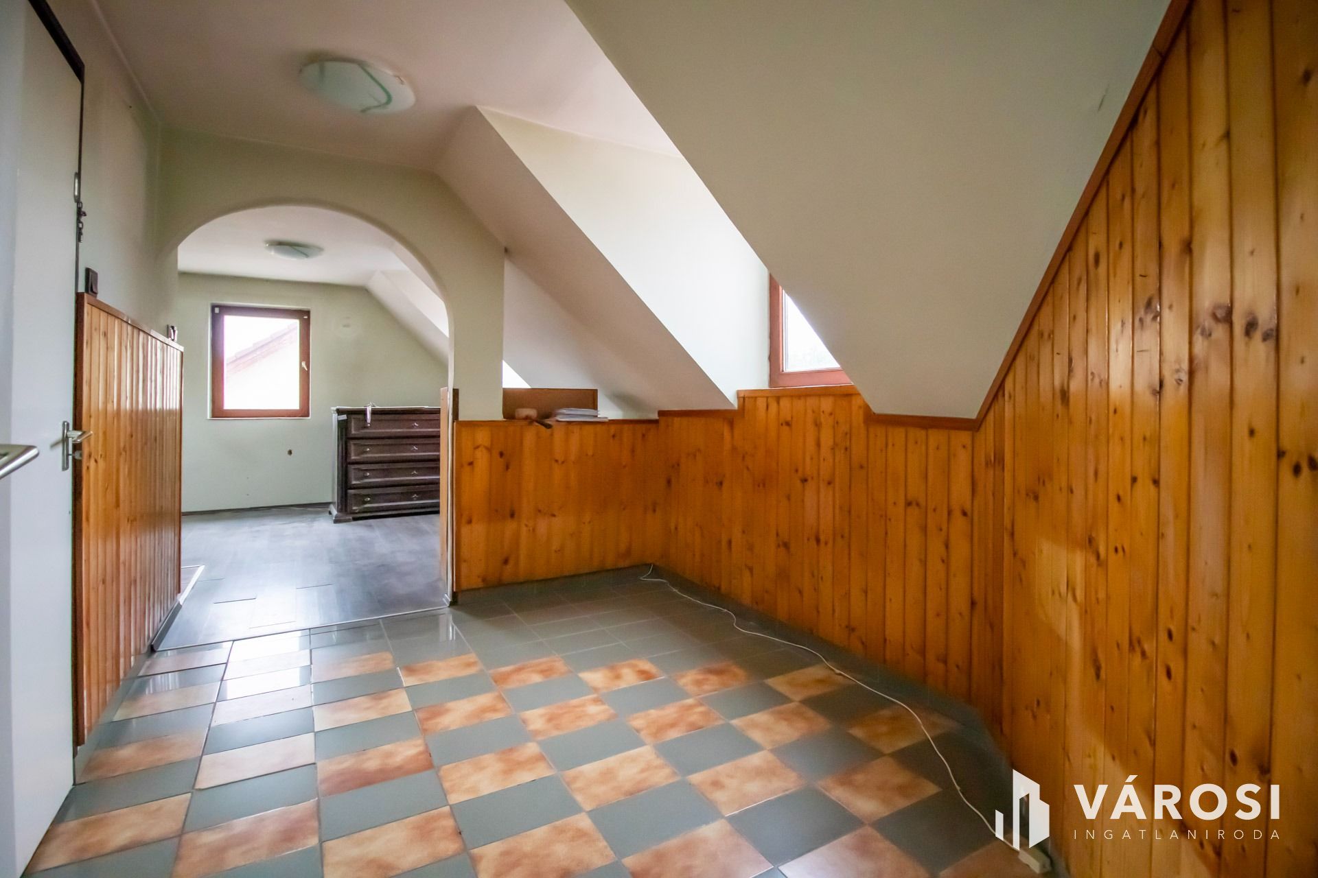 A tágas tetőtérben, további nappali, 3 napfényes szoba, 1 félszoba, konyha, fürdőszoba, wc helyezkedik el, 103 négyzetméteren.