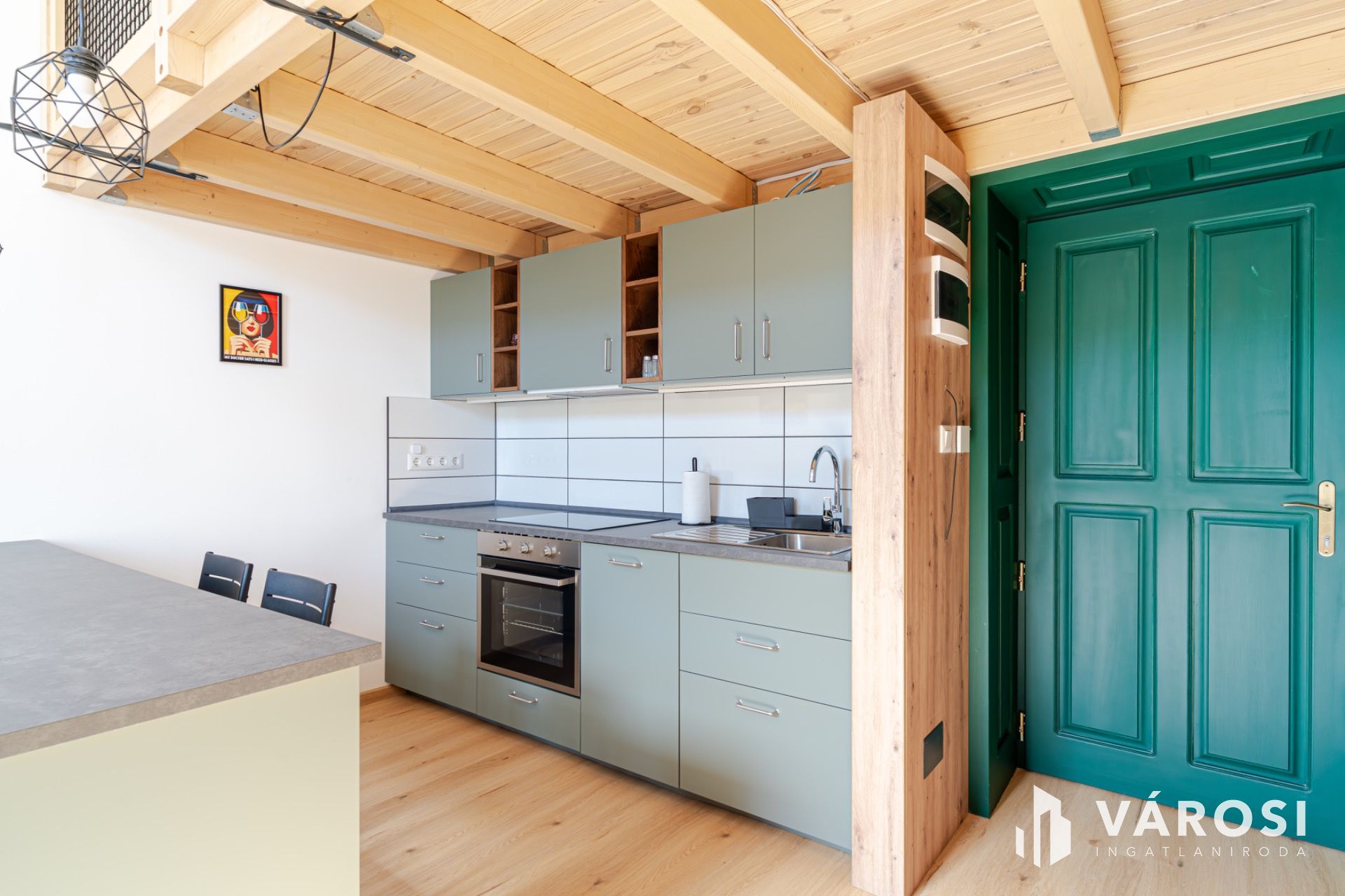 - Teljesen felszerelt modern konyha (főzőlap, sütő, beépített mosogatógép, hűtő).