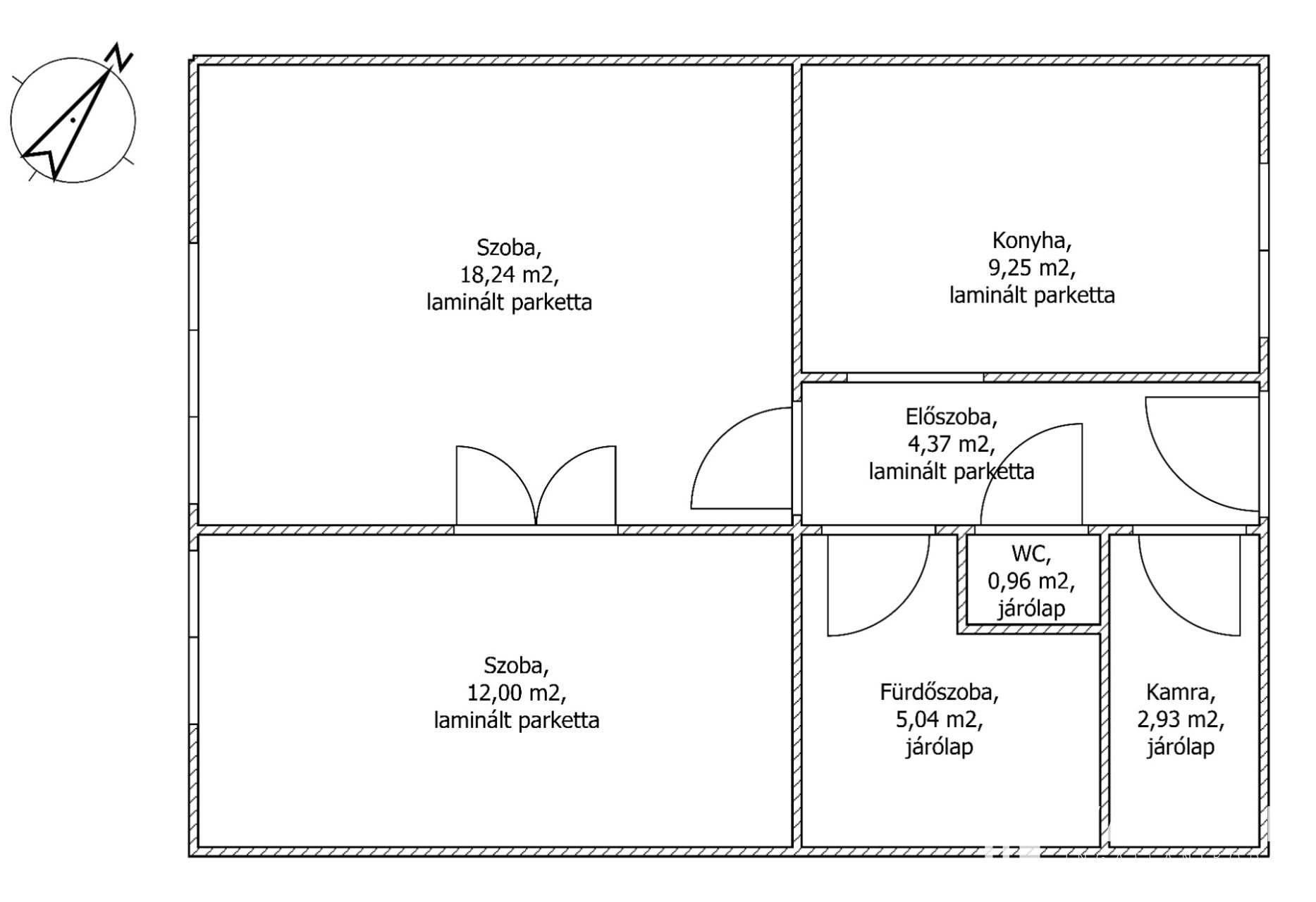 Két kényelmes méretű laminált parkettás szobával,