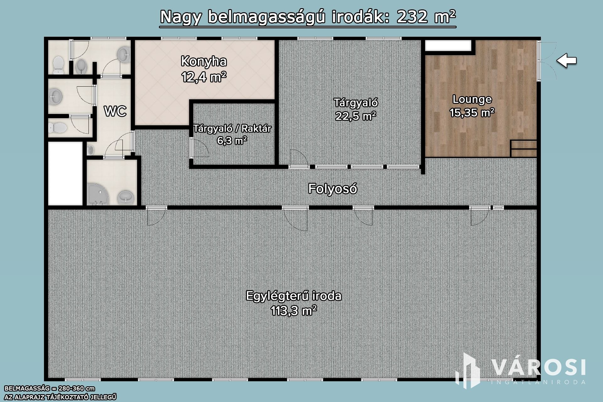 Az iroda belső elrendezése szabadon alakítható a bérlőigényeinek megfelelően.