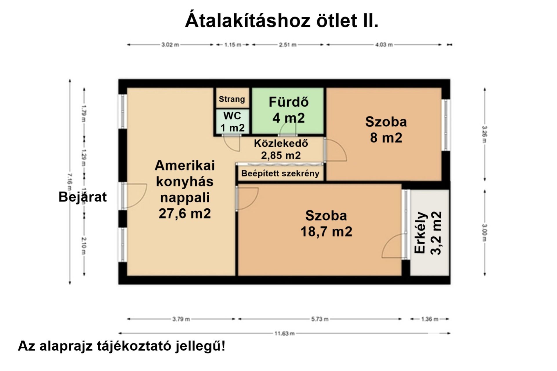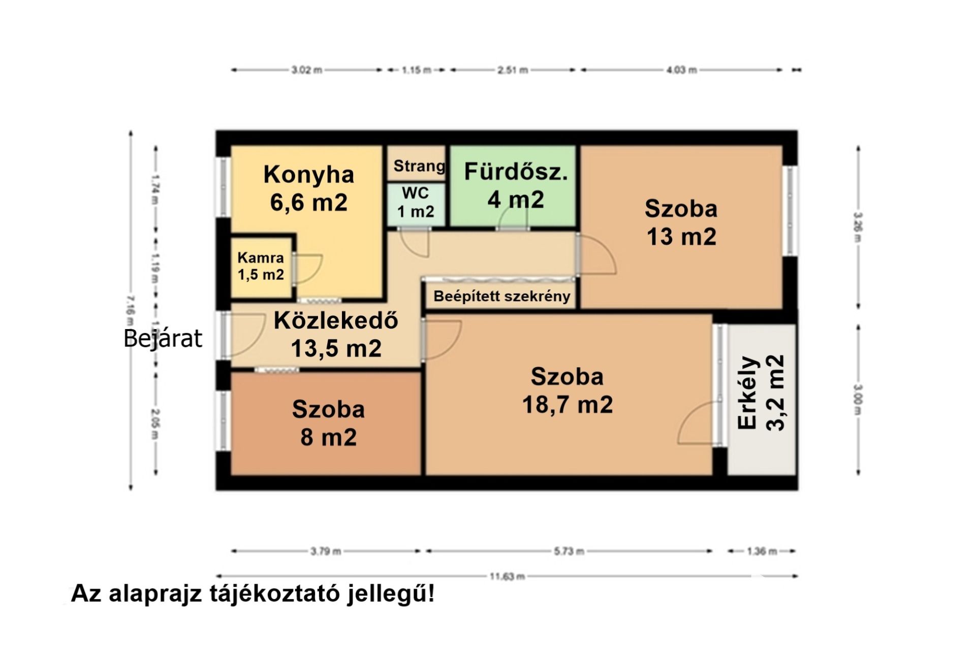 A beépített szekrények praktikus tárolási lehetőséget nyújtanak, míg a közös tároló további helyet biztosít a ritkán használt tárgyak számára.