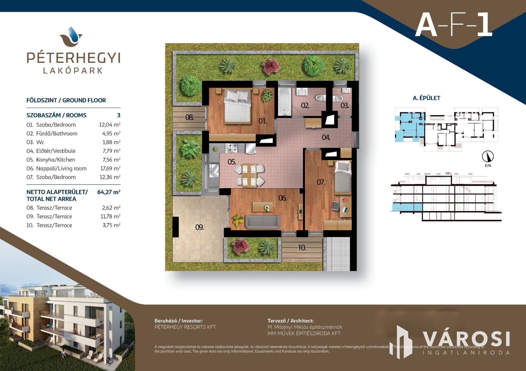 Alapterülete 64 m2 + 20 m2 terasz.