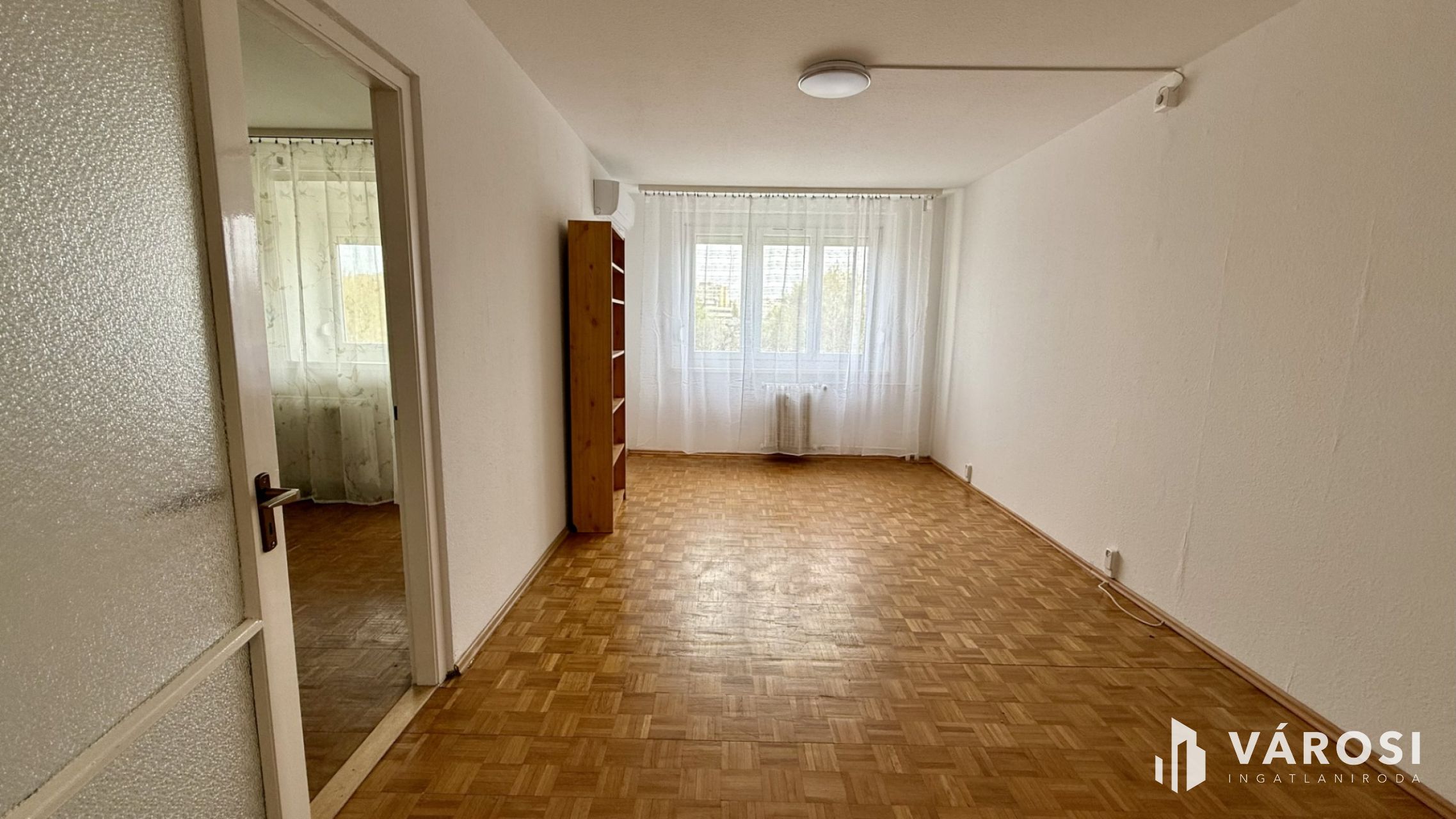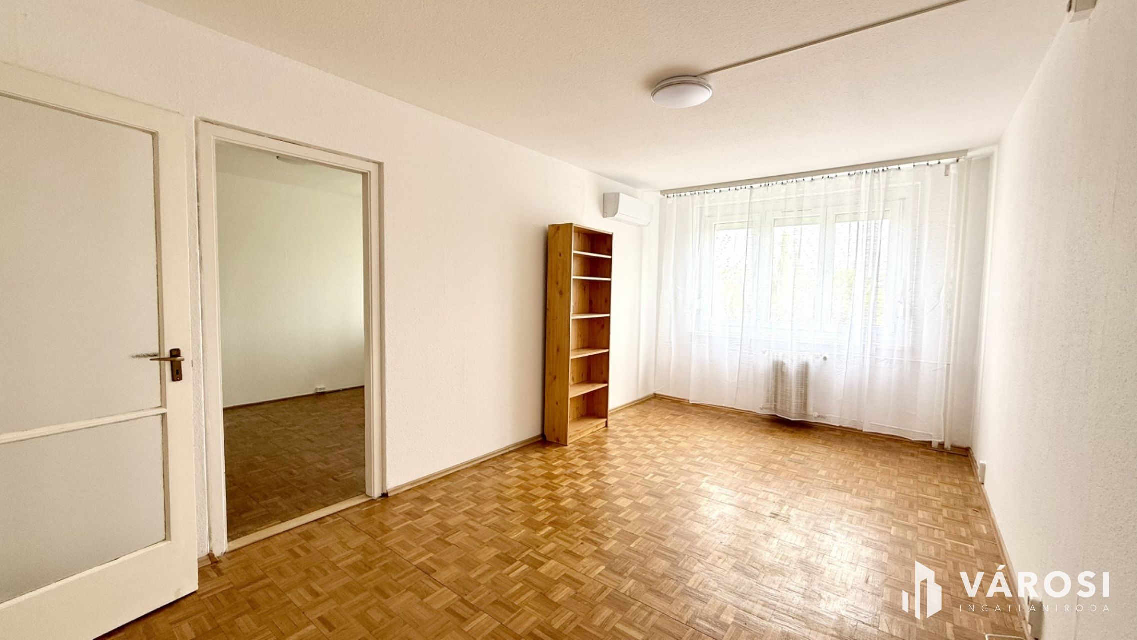 🪵 A parketta és a beltéri ajtók eredetiek, ami karaktert ad a lakásnak, és jól illik a fiatalos, otthonos hangulathoz.