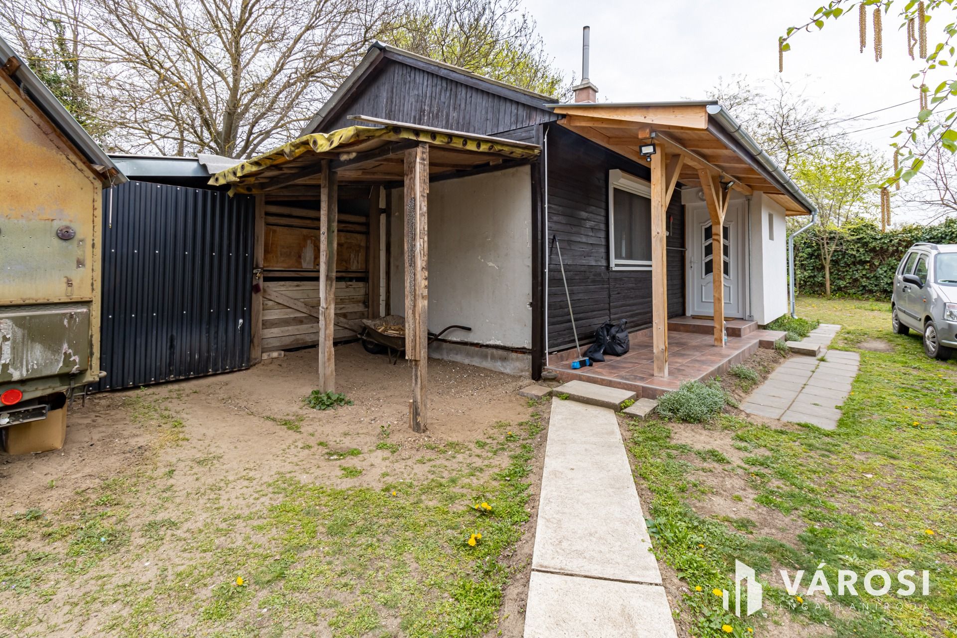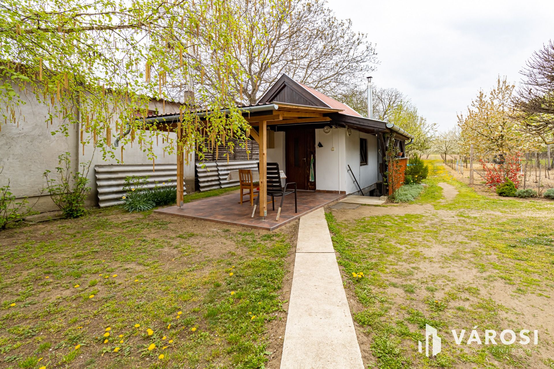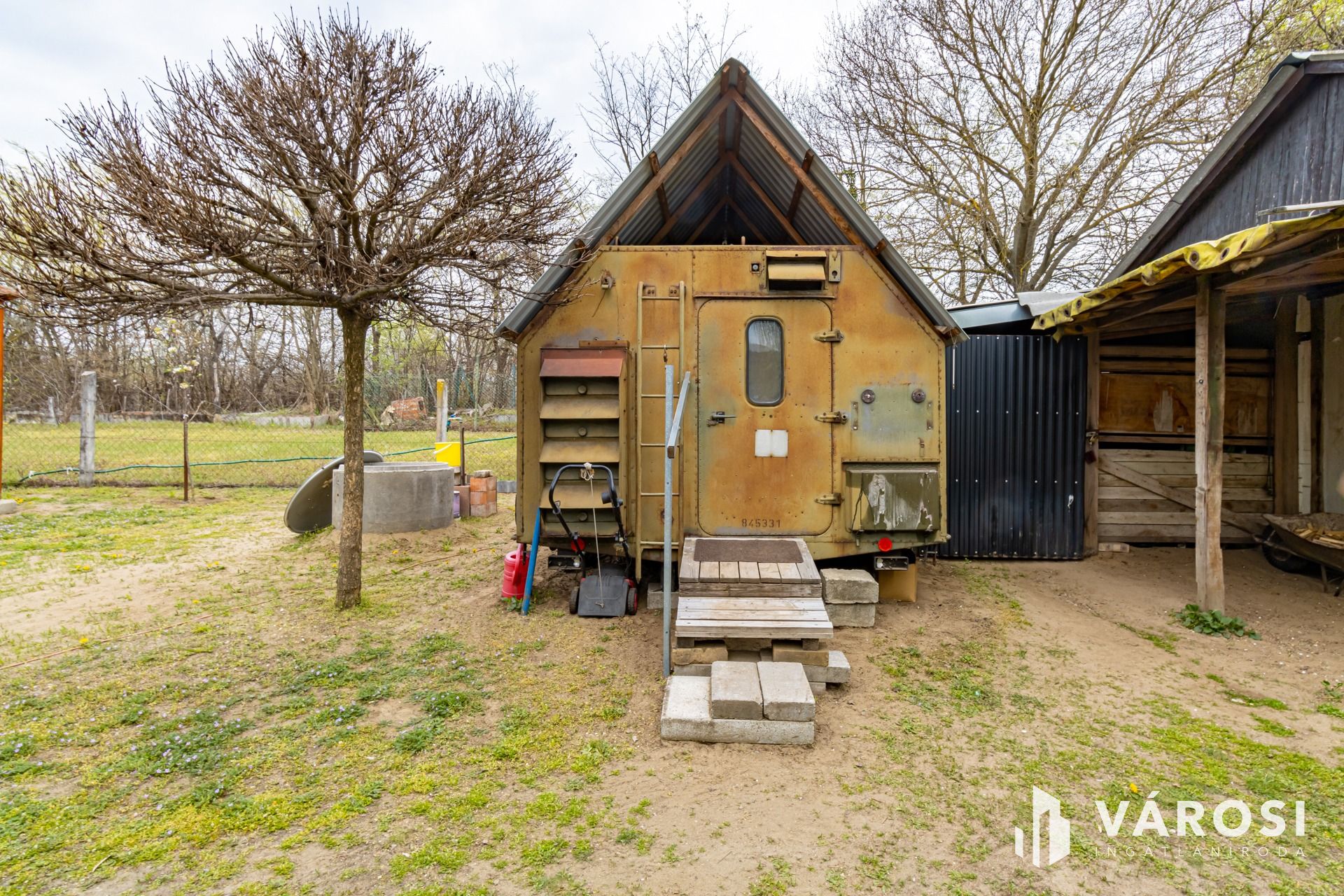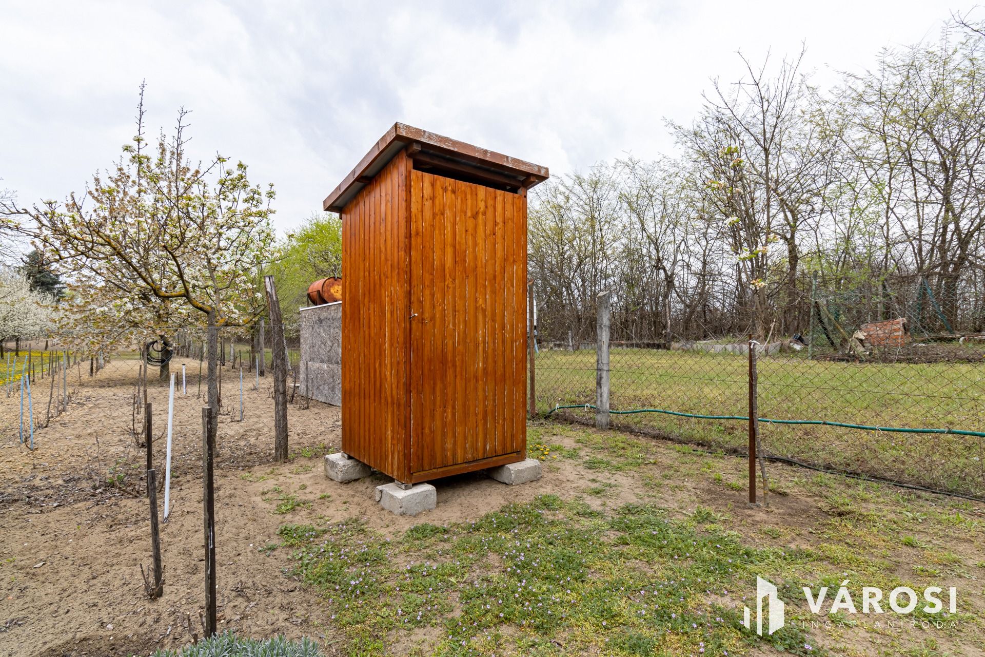 A körbekerített telek, két utca között helyezkedik el. Bár jelenleg egy bejárata van, akár a másik utcára is nyitható egy kapu.
