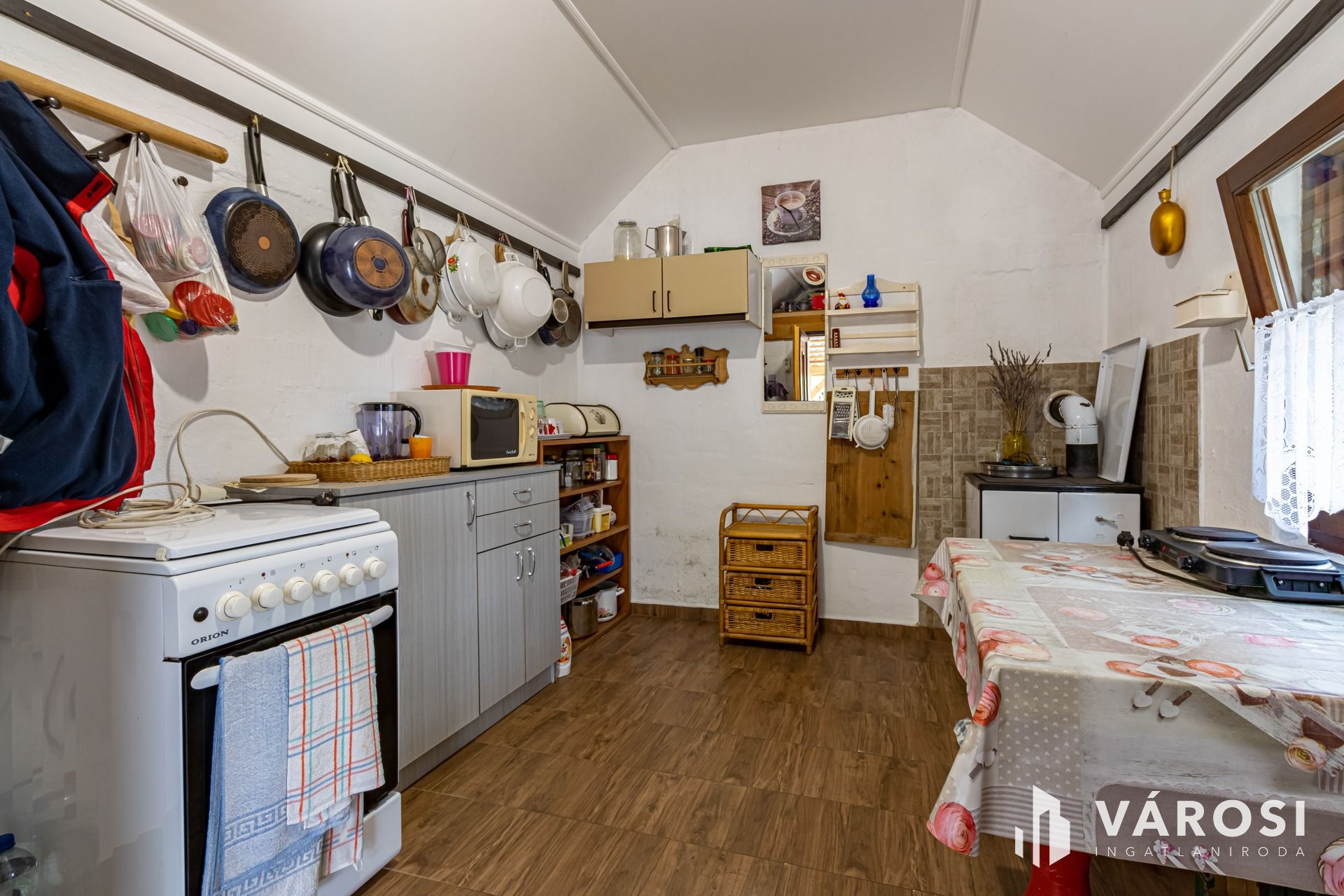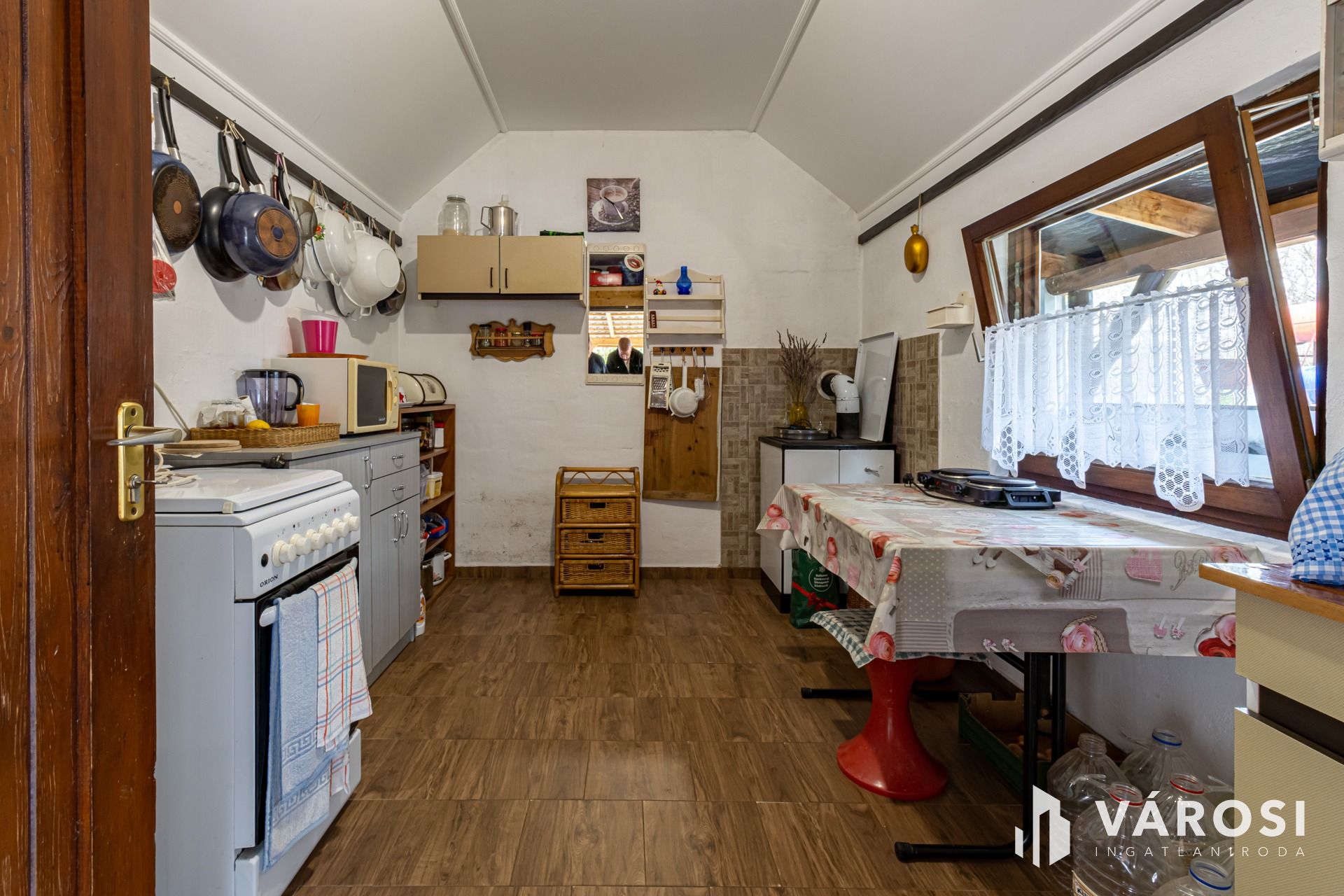 Teljes bútorzattal, kerti gépekkel, rotációs kapa, fűnyíró stb. kerül értékesítésre.
