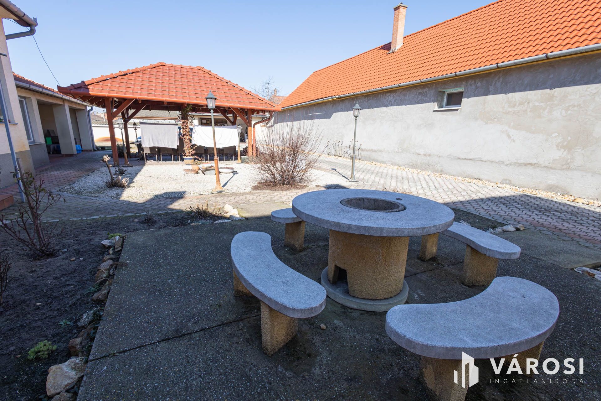 - Térkövezett beálló és rendezett udvar, fedett melléképület.