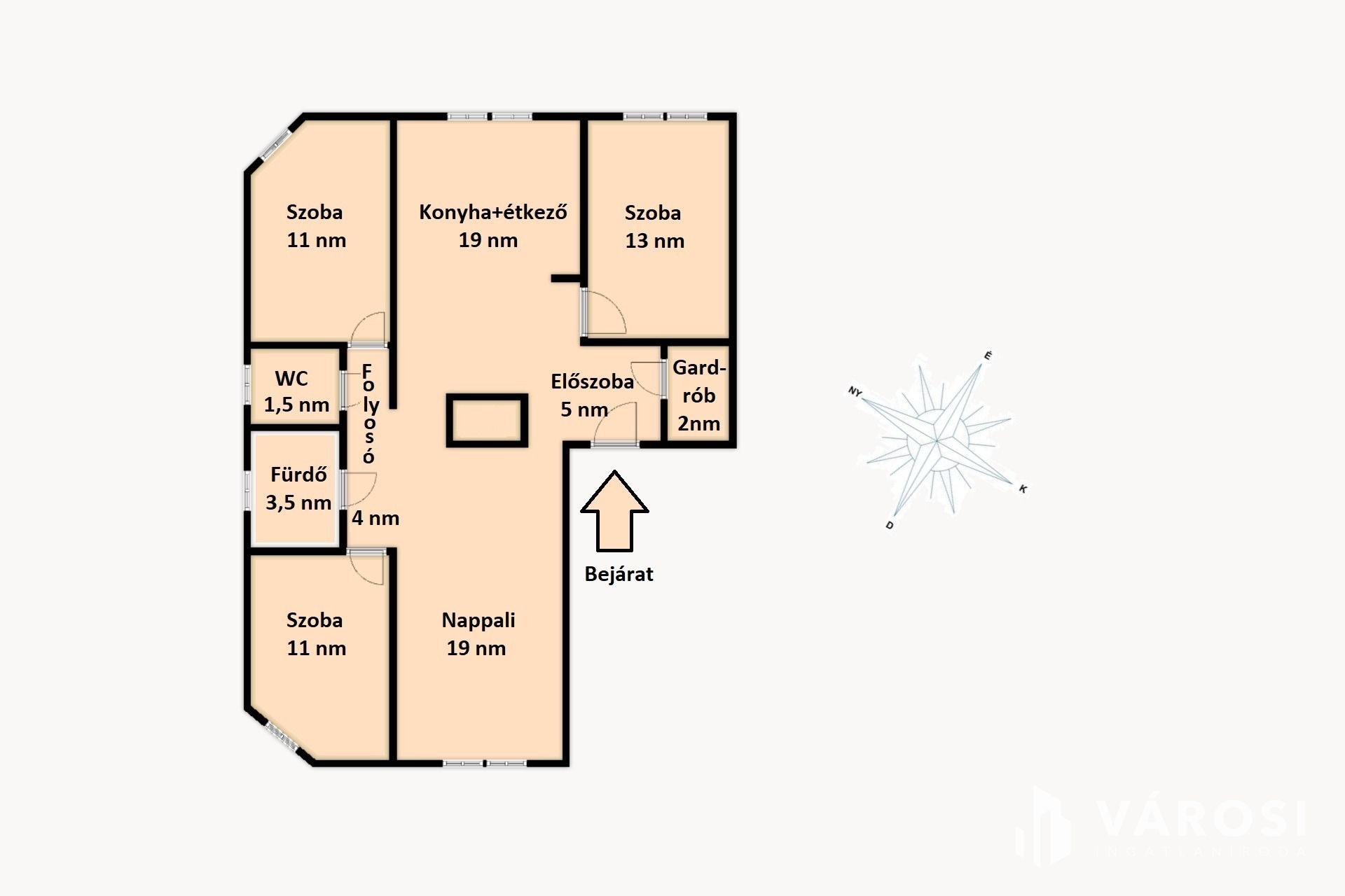 A nappali és a szobák laminált parkettával burkoltak, míg a konyha és a vizes helyiségek kerámia lap burkolatot kaptak.