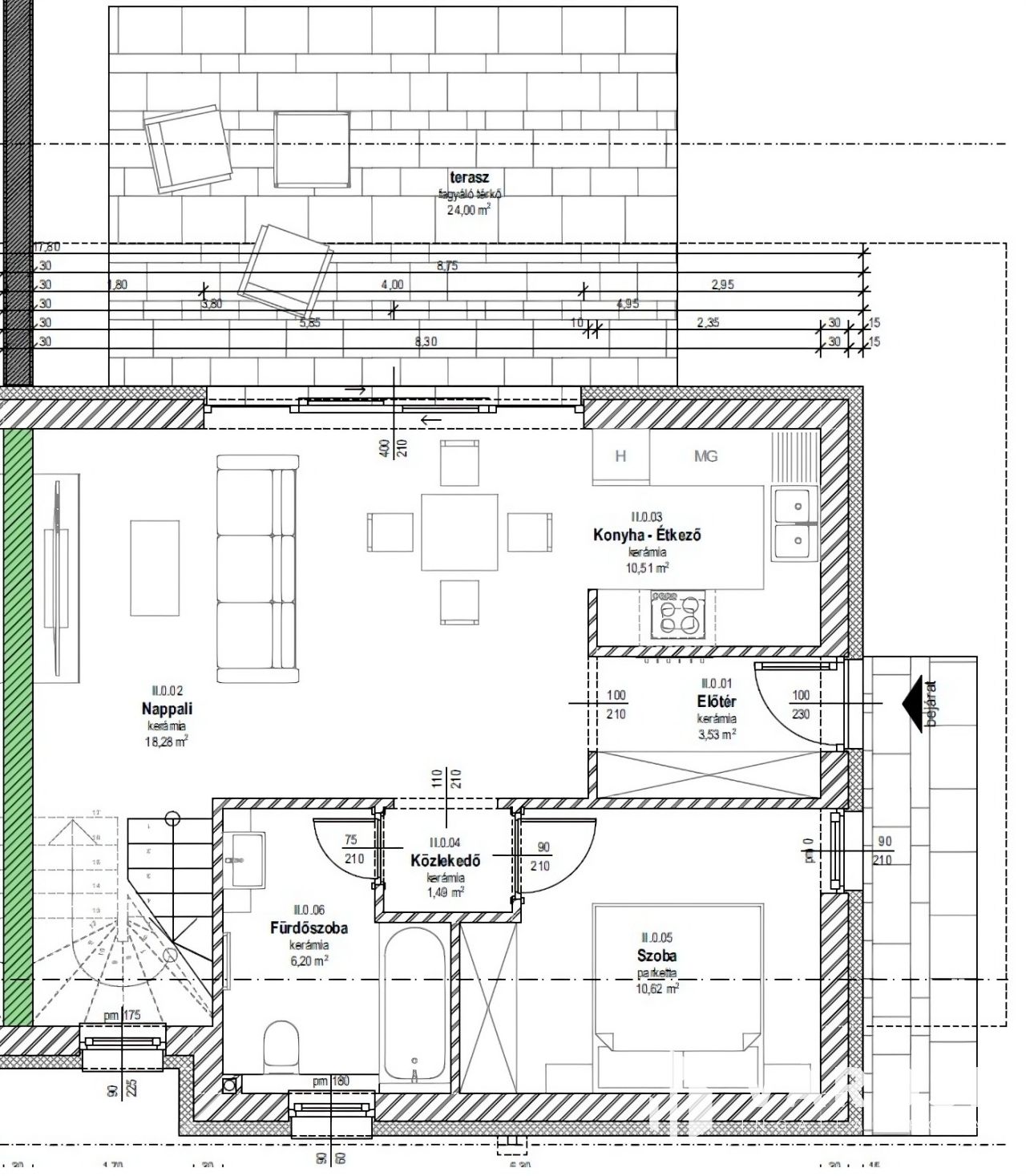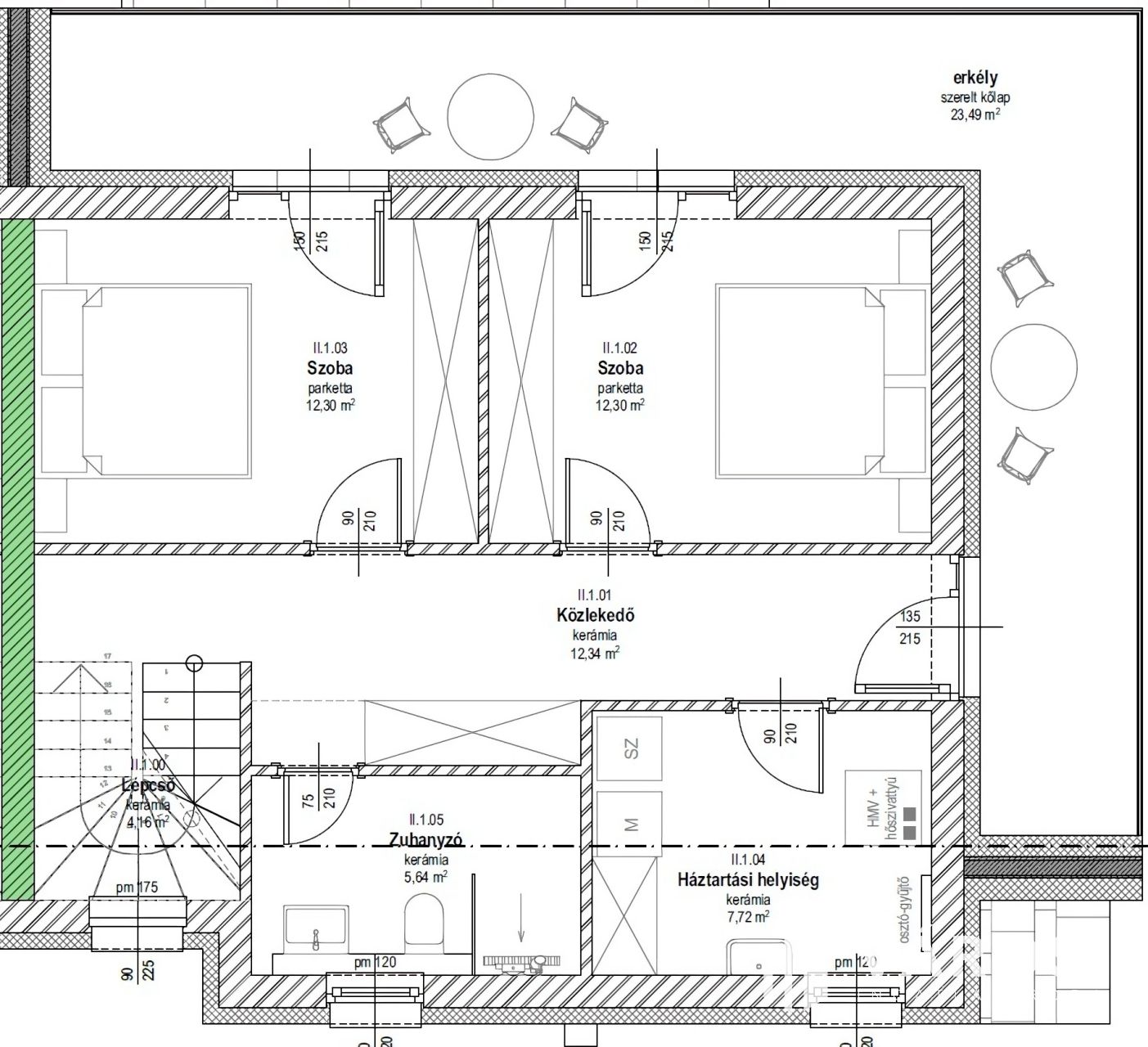 - Energiahatékony megoldások – 15 cm-es grafitos hőszigetelés, hőszivattyús padlófűtés gondoskodik az otthon melegéről