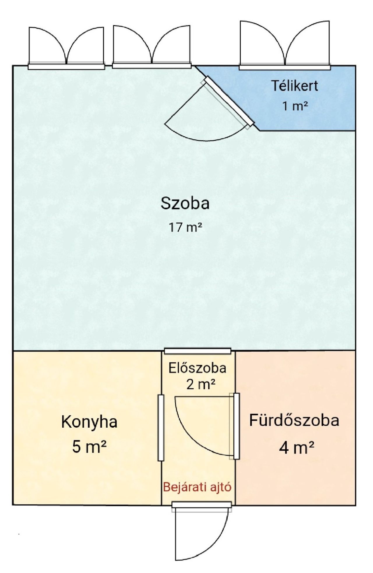 A szoba tágas és napfényes, az előszobából nyílik a minimalista konyha és a zuhanyzós fürdőszoba. Hűtőszekrény, gáztűzhely, tv és internet található az ingatlanban, a bútorzatot egy kinyitható kanapé és egy kör alakú étkezőasztal alkotja két székkel. Különlegessége egy elbűvölő kis télikert, ahol nyugodtan elfogyaszthatja a lakó a reggeli kávéját, miközben belemerül a természet látványába az otthon kellemes melegéből. A fűtés házközponti távfűtés. A lakás délnyugati tájolású, így mindig fényes és az est közeledtével is élvezhetőek a nap sugarai.