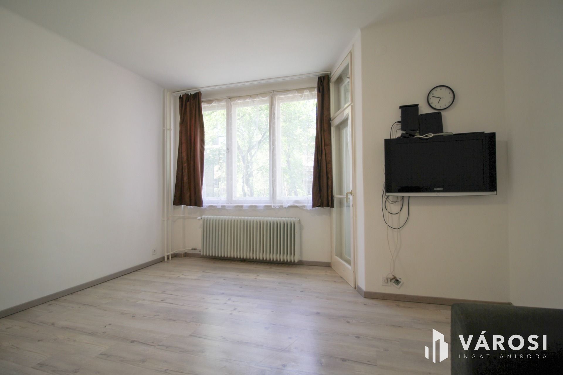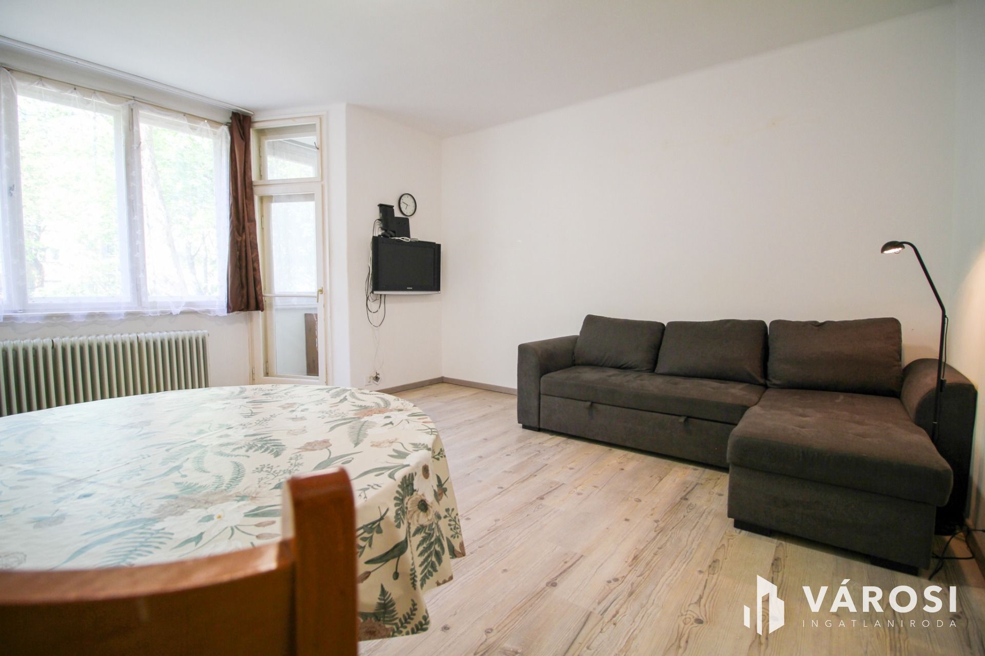 A cozy studio apartment with a winter garden and park views is available for rent on Váradi Street. Partially furnished and equipped, the tenant can customize it to their own taste—the sound of birds chirping and the lush green view are already included.