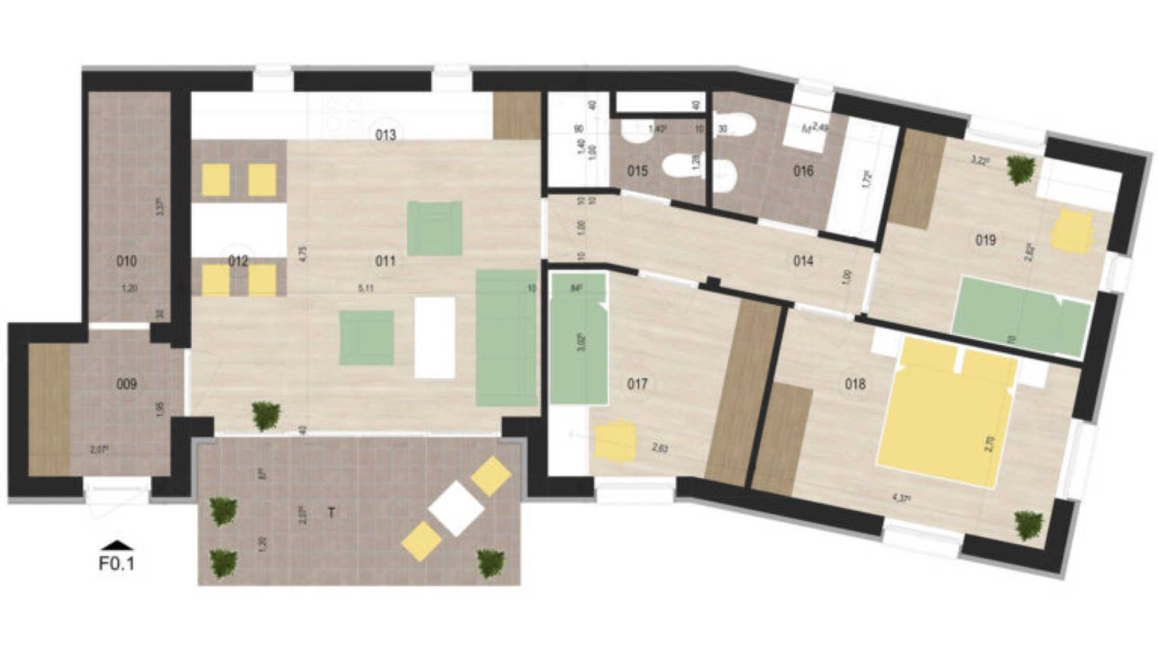 -Elrendezés: 3 szoba + amerikai konyhás nappali, külön fürdőszoba és külön WC.