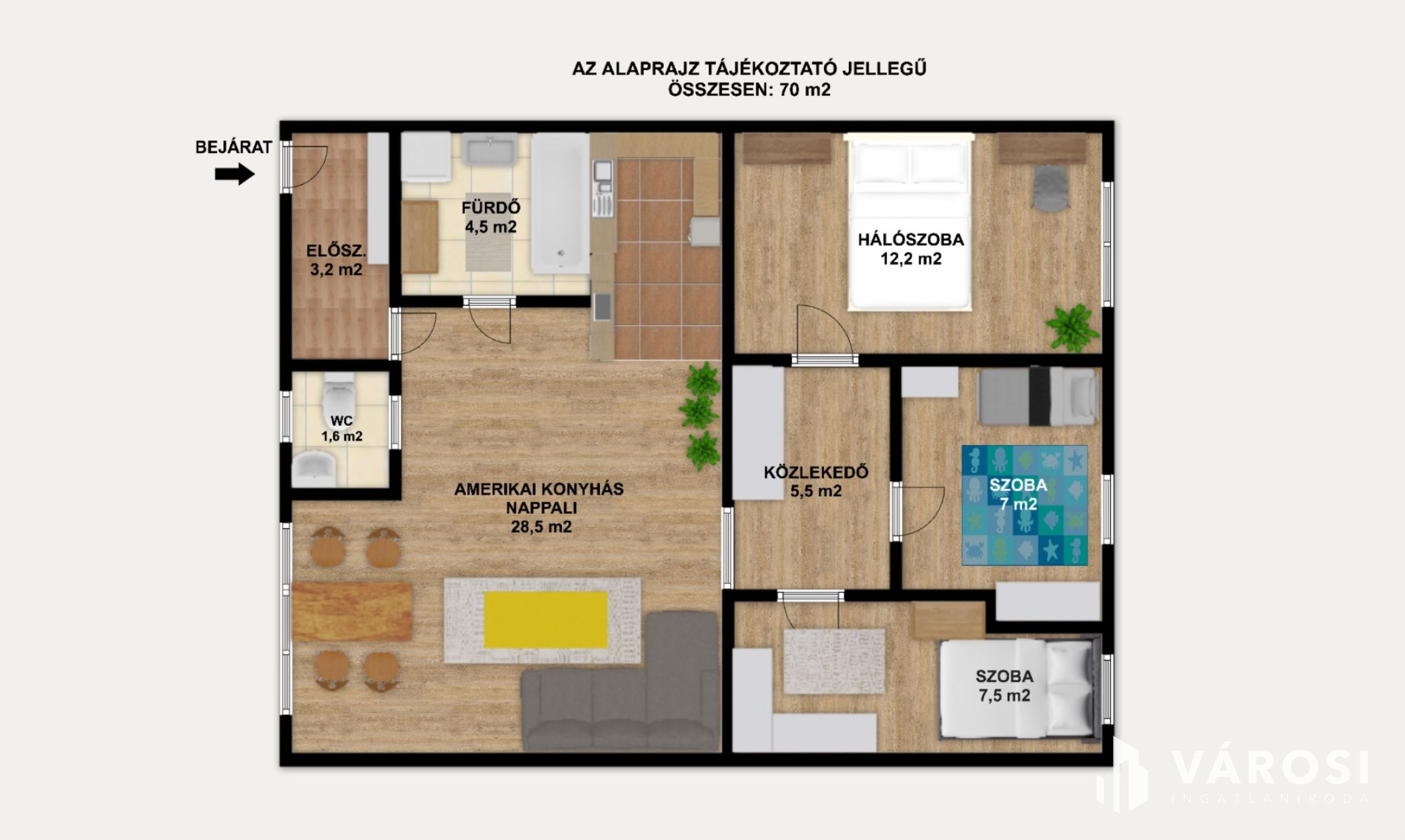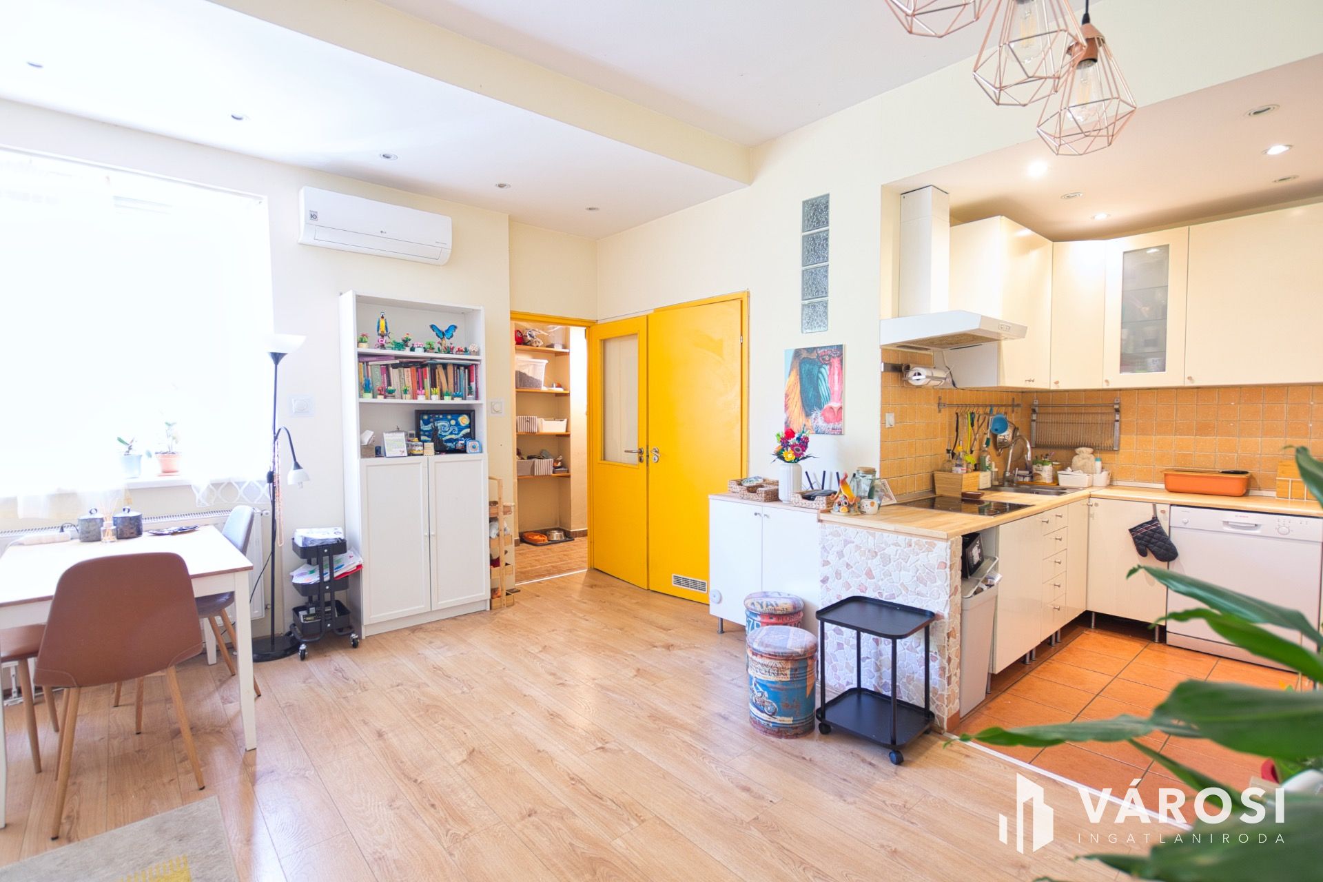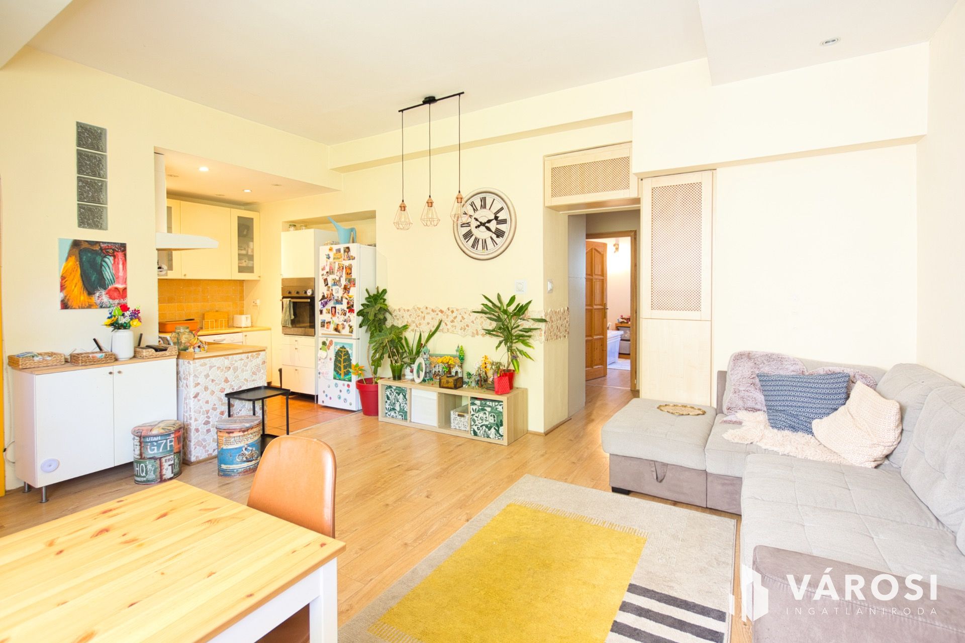 A lakás praktikus elosztású, nappali + 3 külön nyíló hálószobával rendelkezik, így ideális családok számára is. A nappali és a konyha egy légtérben helyezkedik el, és a gondozott, ősfás belső kertre néz, ami ritka nyugalmat biztosít a városi környezetben.