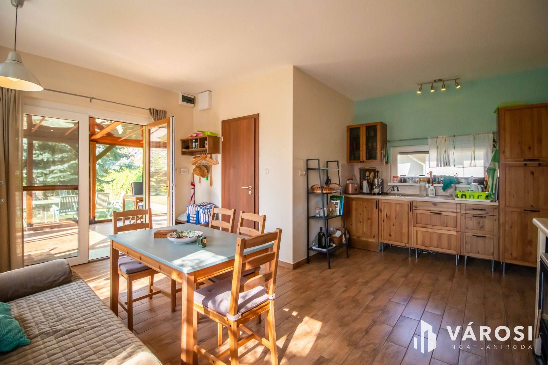 Az 577 négyzetméteres telken épült, 62 négyzetméteres tégla falazatú házban amerikai konyhás nappali étkezővel, 2 szoba és fürdőszoba található. A ház előtti terasz be lett építve, 3 rétegű üvegezéssel ellátott oldalfalakkal és hatalmas tolóajtóval. Ezeket kinyitva, közvetlen kapcsolat nyílik a csodás kerthez. Akár mind a 4 évszakban használható! Az életteret növeli a ház mellé épített szabadtéri konyha is. A ház igény szerint a teljes berendezéssel együtt eladó. A ház mellett további kettő kis tároló került megépítésre, a kerti eszközök tárolására.