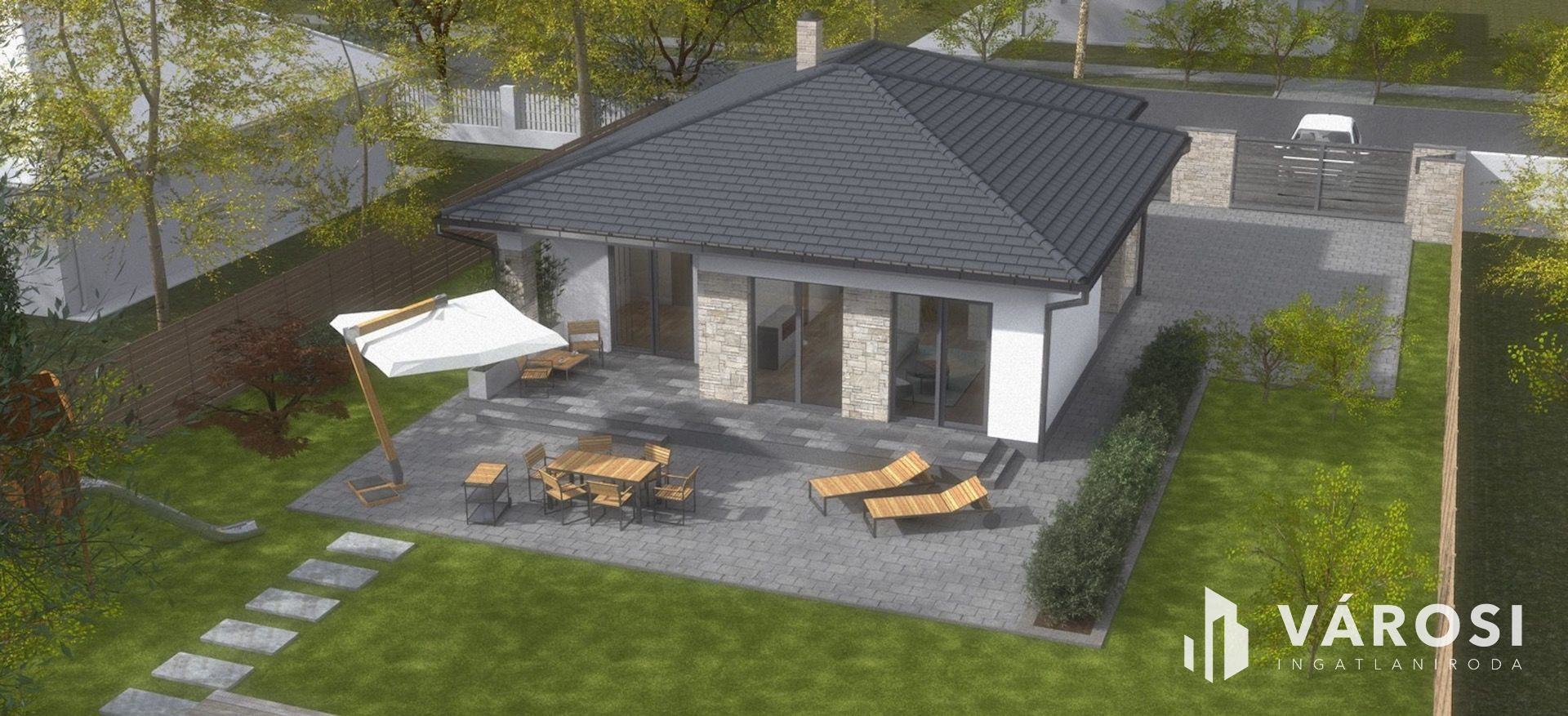 Stílusos otthon nagy terasszal új lakóparkban