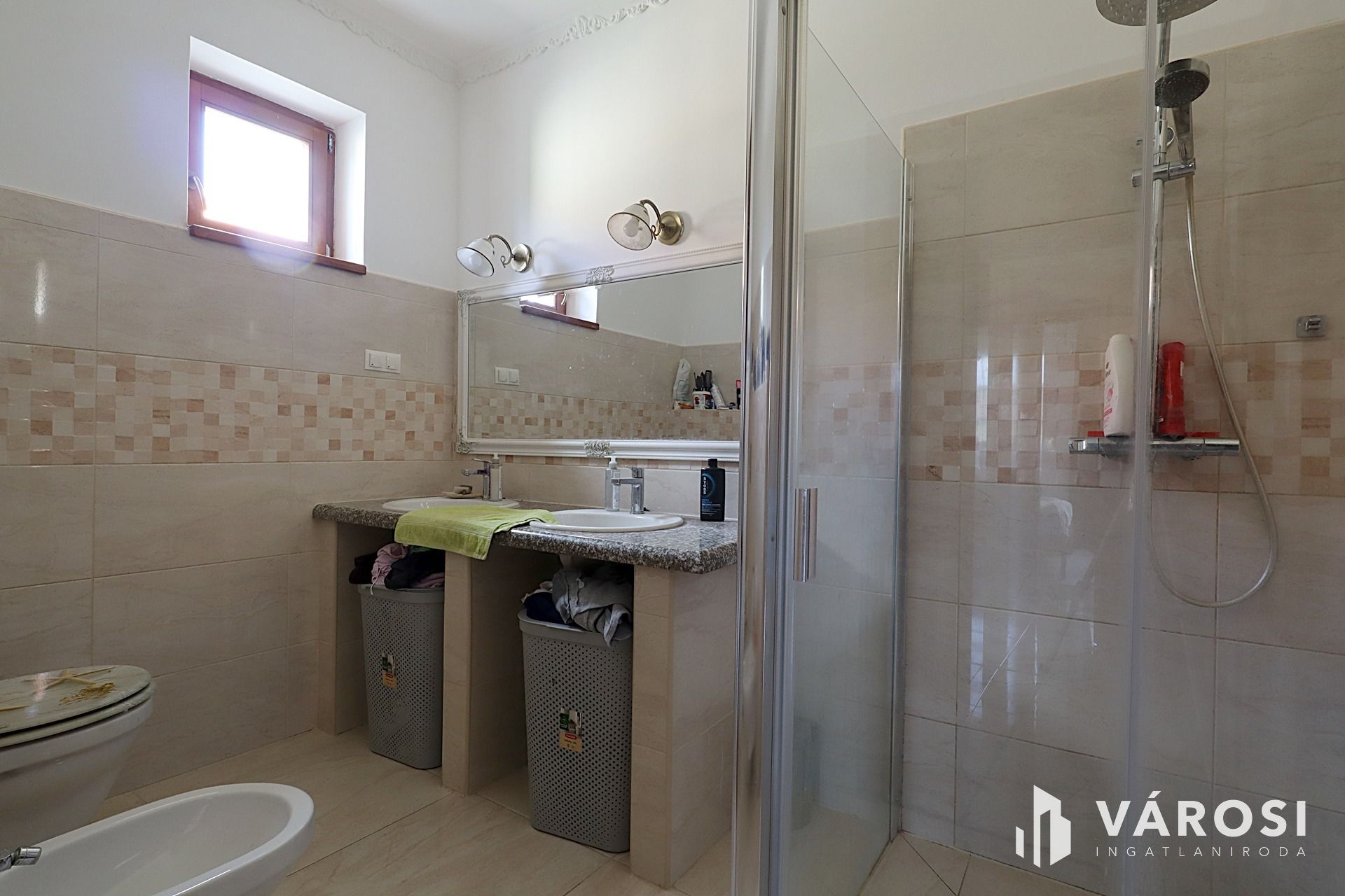 A földszinten egy fürdőszoba WC-vel, valamint egy különálló WC is helyet kapott, míg az emeleten a fürdőszoba és a külön WC kialakítása már elkezdődött, de befejezésre vár — így az új tulajdonos saját elképzelései szerint alakíthatja ki.