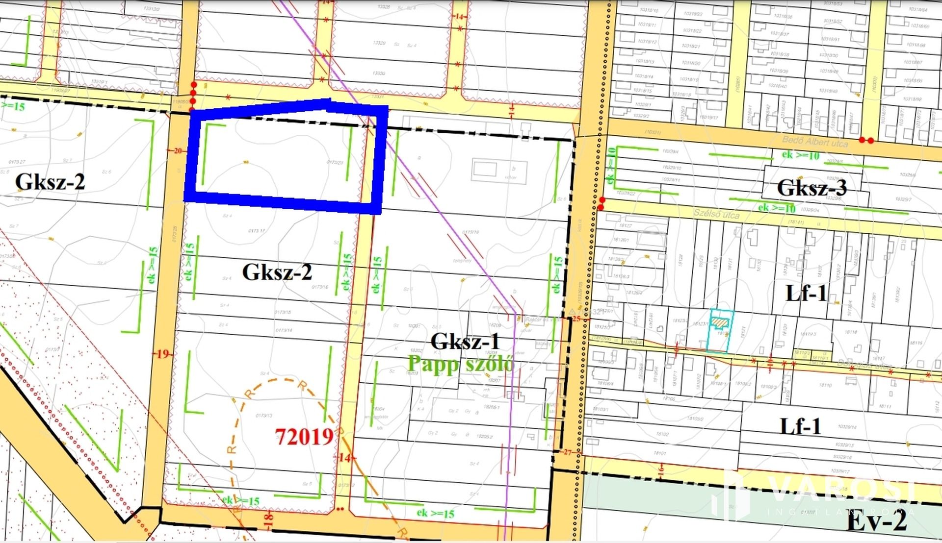 A terület besorolása Gksz-2, azaz kereskedelmi szolgáltató gazdasági területek.