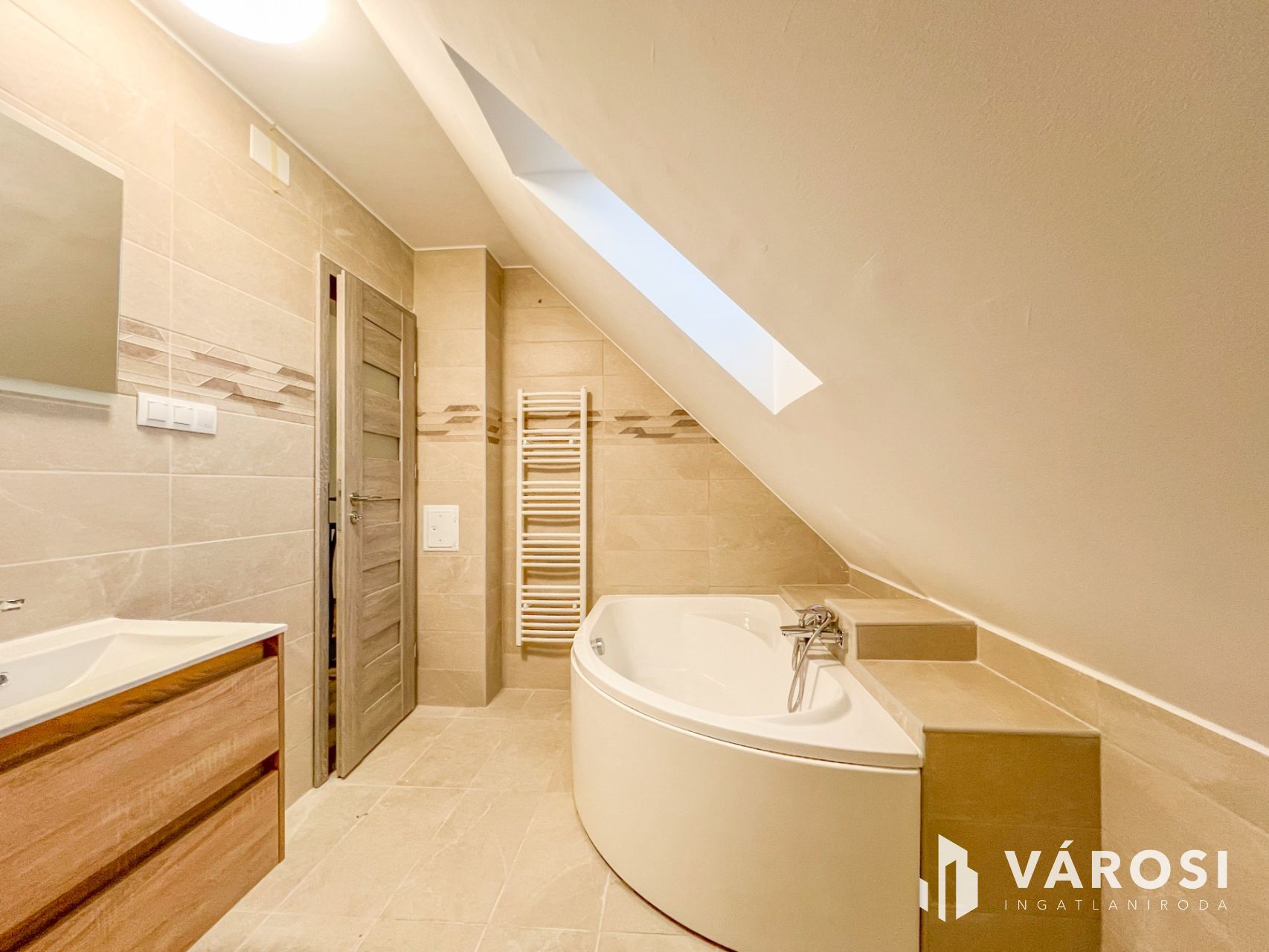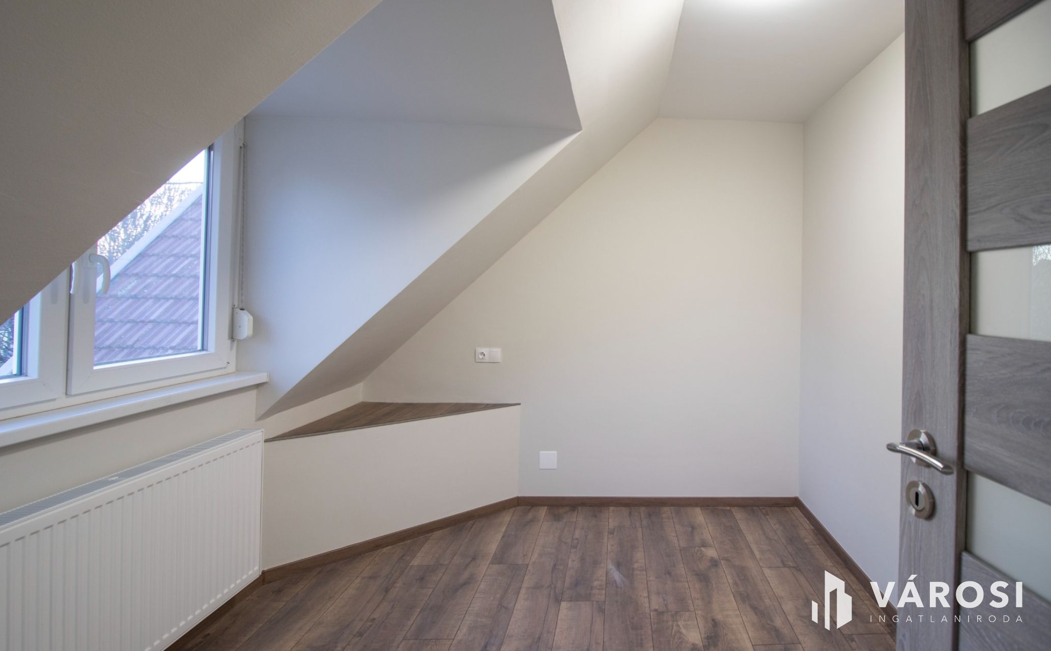 Az épület tetőtere 46 m2 hasznos területű, három hálószoba, egy fürdőszoba, szárítóhelyiség/mosókonyha került kialakításra.